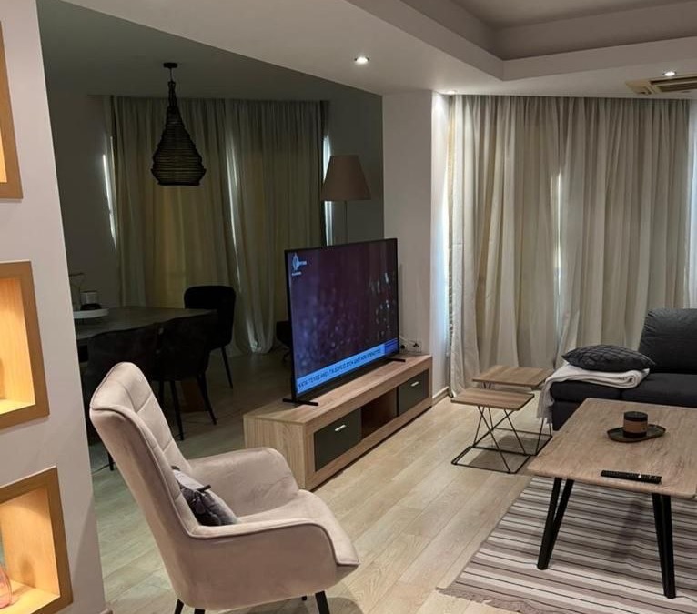 Two-bedroom apartment of 105 m2 for rent in Potamos Germasogeias, Limassol. The apartment includes 2 bedrooms, 2 bathrooms, a kitchen, a living room and 2 balconies. The apartment is fully furnished, equipped with all necessary household appliances and equipped with an air conditioning system. The apartment is located on the 5th floor. The property is located in a complex, just 100 m from the sea, with direct access to the beach and water sports. The residence offers a swimming pool, a large gym, cleaning services and round-the-clock security, ensuring a high level of comfort and safety of living, as well as a covered parking space.