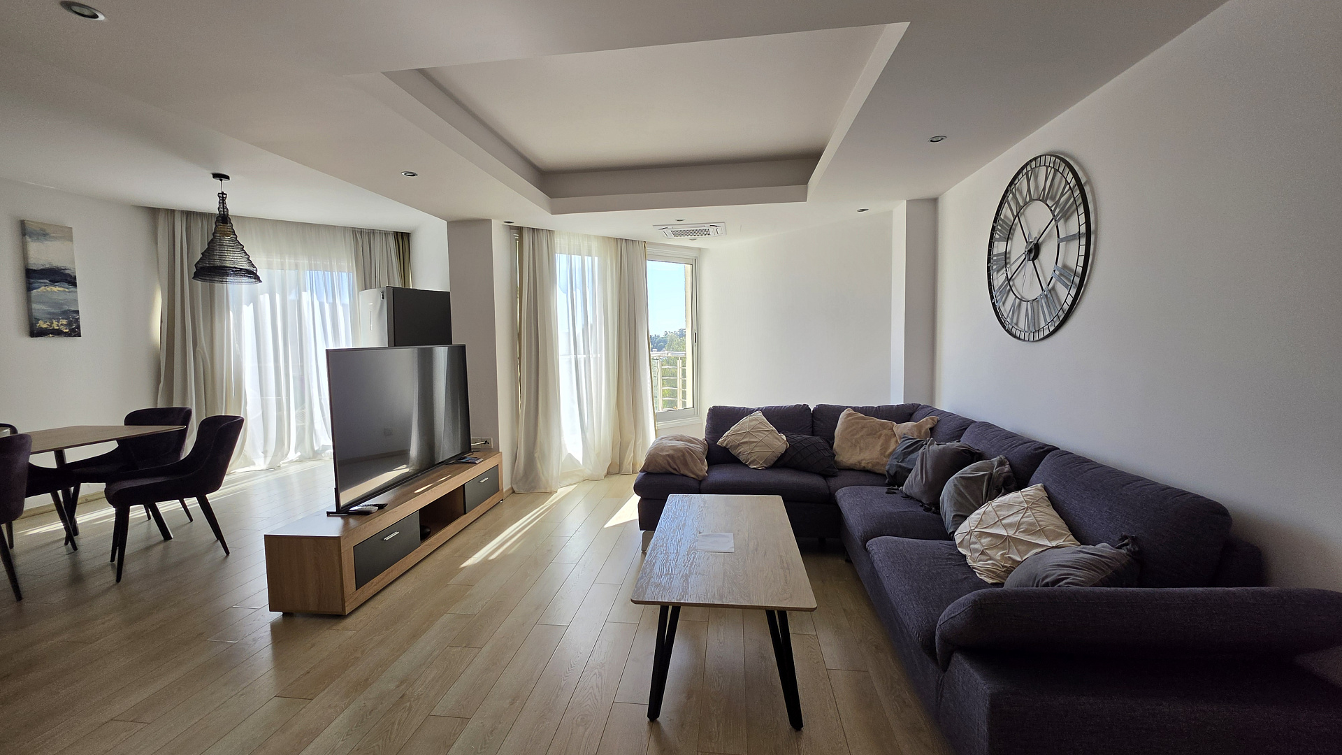 Two-bedroom apartment of 105 m2 for rent in Potamos Germasogeias, Limassol. The apartment includes 2 bedrooms, 2 bathrooms, a kitchen, a living room and 2 balconies. The apartment is fully furnished, equipped with all necessary household appliances and equipped with an air conditioning system. The apartment is located on the 5th floor. The property is located in a complex, just 100 m from the sea, with direct access to the beach and water sports. The residence offers a swimming pool, a large gym, cleaning services and round-the-clock security, ensuring a high level of comfort and safety of living, as well as a covered parking space.