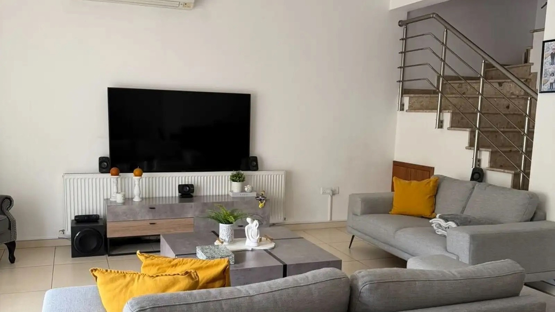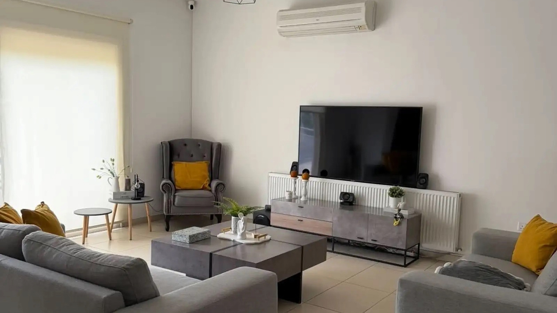 For rent a three-bedroom house of 180 m2 on a plot of 200 m2 in the area of Agios Athanasios, Limassol. The house includes 3 bedrooms, 3 bathrooms, a kitchen, a living room, a balcony, a covered veranda of 20 m2 and a garden with a technical lawn. The residence is unfurnished, equipped with an air conditioning system in all rooms and a fireplace. The property is located in a great area with easy access to all necessary amenities. The well-maintained house, built in 2009, is in excellent condition and does not provide for general expenses.