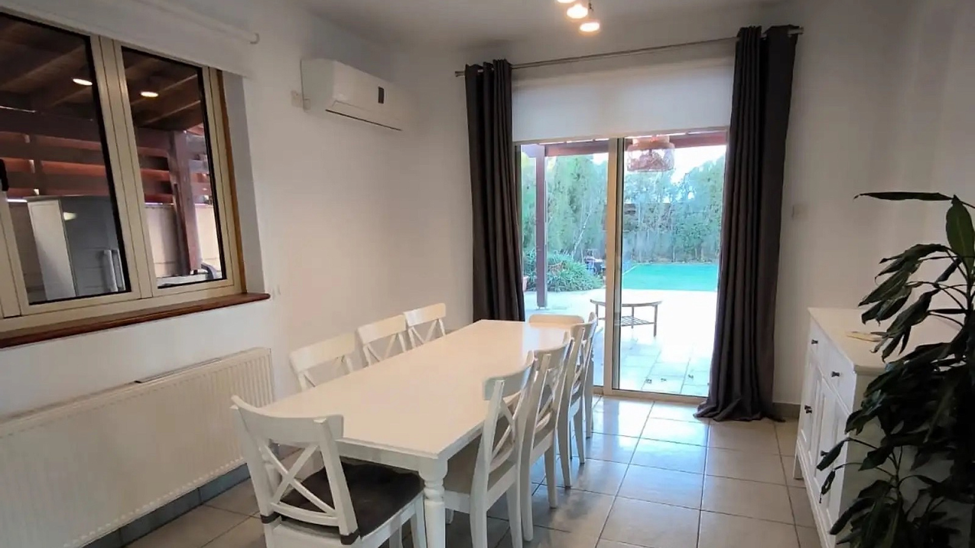 For rent a five-bedroom house with an area of 260 m2 on a plot of 586 m2 in the area of Egkomi - Makedonitissa, Nicosia. The house includes 5 bedrooms, 4 bathrooms, 3 bathrooms, a spacious living room, a kitchen, balconies, an attic and storage rooms. The residence is partially furnished, equipped with air conditioning in all rooms and central heating. The property is located in a quiet residential area of Egkomi - Makedonitissa with convenient access to urban infrastructure. Additionally, the house has a large well-kept garden and covered parking for 2 cars, pets are allowed.