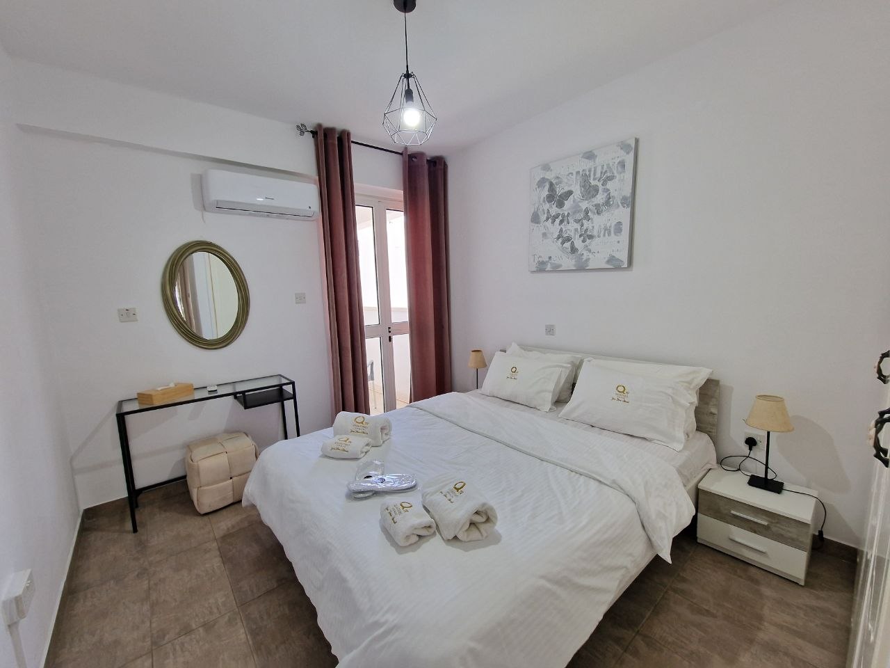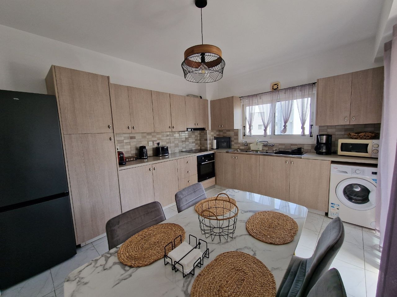 Two-bedroom apartment for rent in the center of Larnaca, located in a private two-storey building. The 150 m2 apartment with an internal area of 120 m2 includes two bedrooms, a spacious living room with a dining area, a separate kitchen, a bathroom with a bathtub and two balconies (front and back). The apartment has recently been completely renovated, fully furnished and equipped with new appliances, including a gas stove and oven, as well as everything necessary for a comfortable stay. The building has high-speed fiber-optic Internet, and a separate router is provided for the apartment. The building is equipped with a video surveillance system and controlled access. Parking and free outdoor parking are available nearby. The apartment is located in the city center, close to all necessary infrastructure