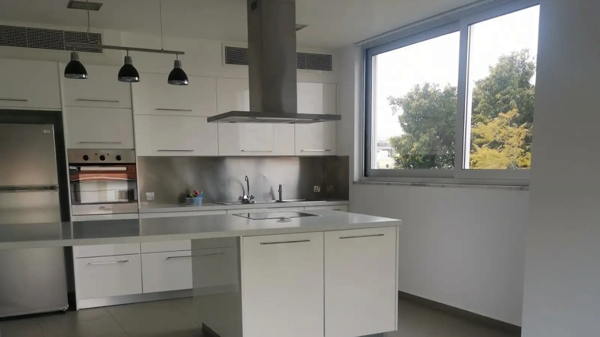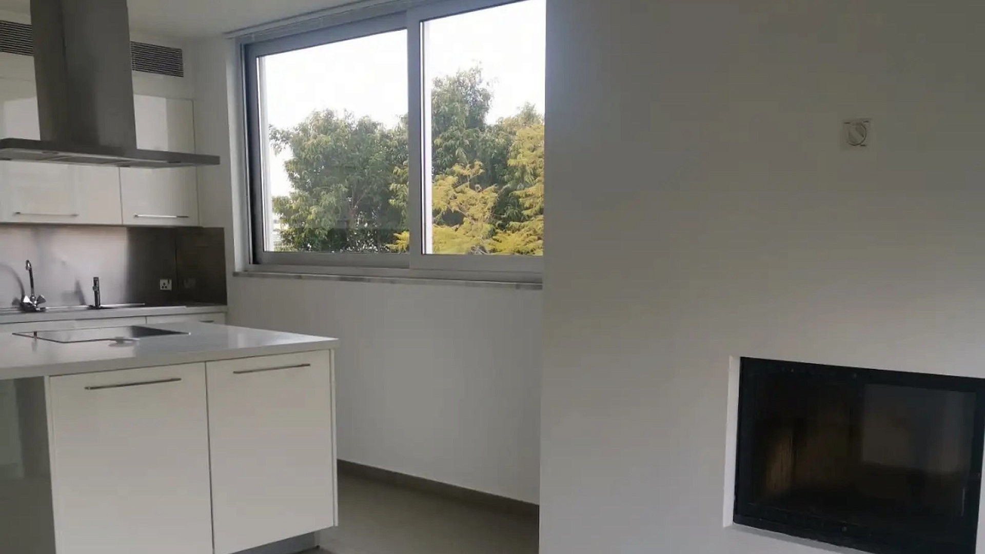 For rent a two-bedroom apartment of 110 m2 in the area of Strovolos, Nicosia. The apartment includes 2 spacious bedrooms, one of which has a private bathroom with a shower, 2 bathrooms, a kitchen, a living room with a fireplace, a balcony and a pantry. The apartment is equipped with household appliances, including a refrigerator, stove and oven, an energy-efficient air conditioning system is installed in all rooms, as well as a solar water heating system. The apartment is located on the 2nd floor. The property is located in a quiet residential cul-de-sac next to the Aretaeion Clinic and Falcon School, providing privacy while being close to the necessary infrastructure. The accommodation is located in a small energy-efficient building of modern architecture, with covered parking, elevator, pets allowed, available from May 1.