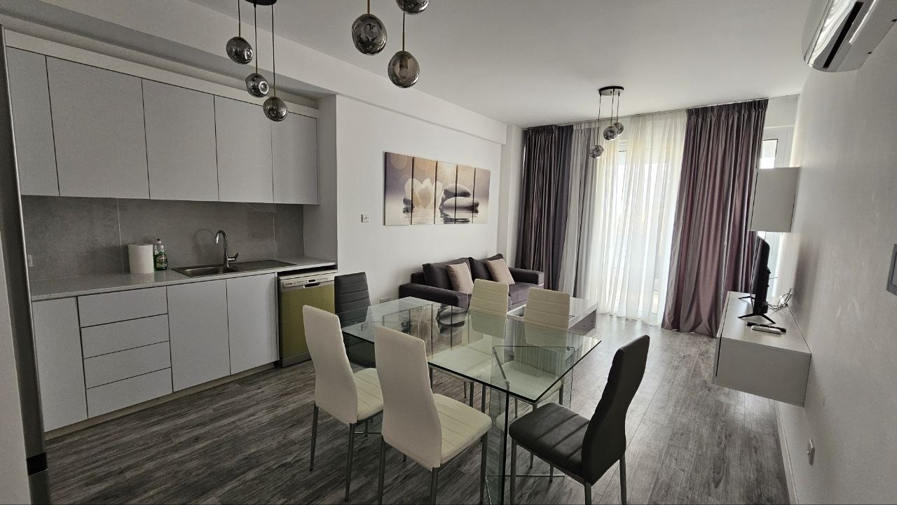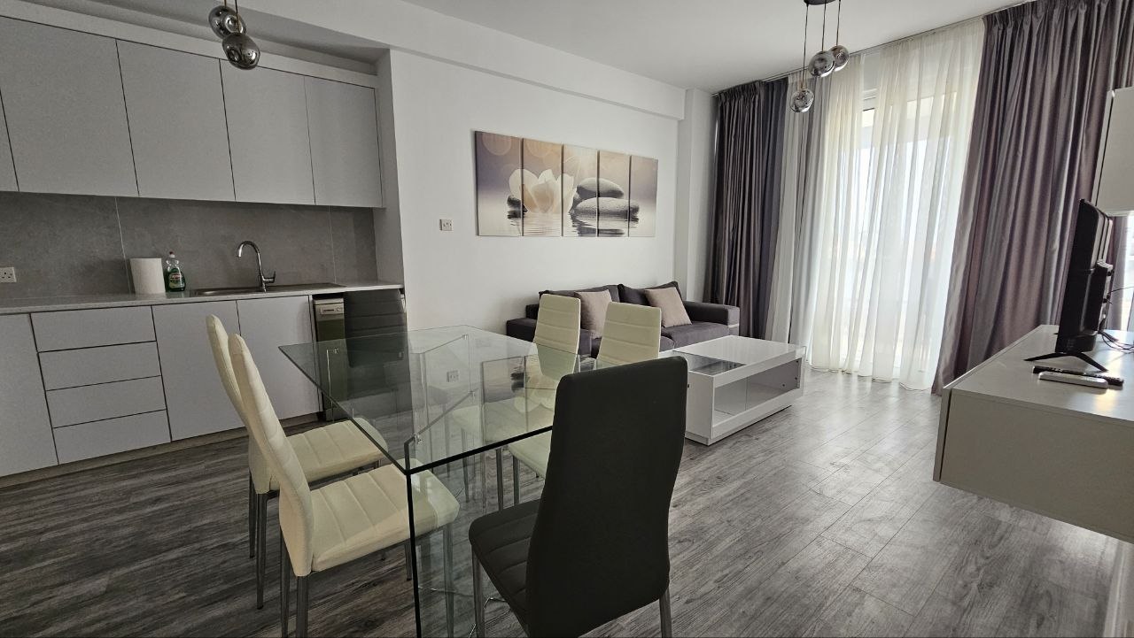 One-bedroom apartment of 55 m2 with a veranda of 10 m2 for rent in Chrysopolitissa, Larnaca. The apartment includes 1 bedroom, 1 bathroom, a kitchen, a living room and a spacious veranda. The apartments are fully furnished and equipped with household appliances, as well as high-speed internet access. The apartment is located on the 3rd floor of a modern building built in 2023 in the center of the archaeological zone, just a 10-minute walk from the city center, near supermarkets, restaurants and pharmacies. The building is equipped with a video surveillance system and a secured parking space for residents is provided.