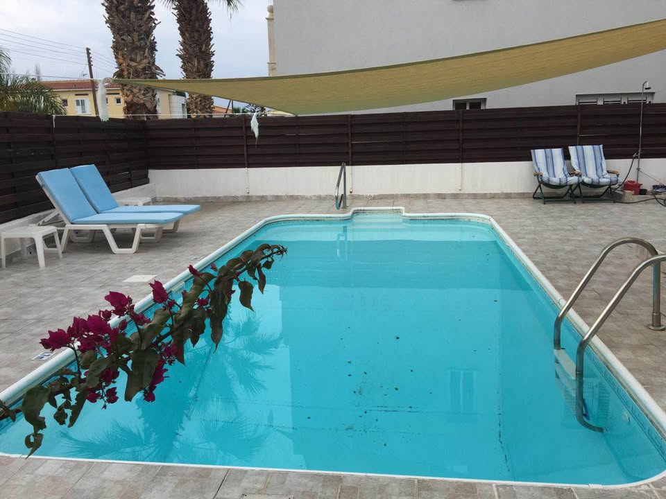 Three-bedroom house for rent in Universal area, Paphos city, house area 180 m2, plot area 300 m2. The house has 3 bedrooms, 2 bathrooms and a guest toilet. Fully furnished, equipped with household appliances, air conditioning in all rooms, fireplace. There is a private swimming pool and private parking on site. The house is in good condition.