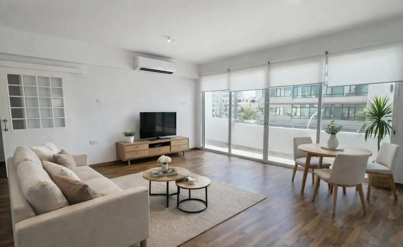 Three-bedroom apartment for rent in the Strovolos - Acropolis area, Nicosia. The area of the apartment is 120 m2, located on the 2nd floor. The apartment is equipped with household appliances, includes 3 bedrooms and 2 bathrooms, with a spacious living room, dining area, separate kitchen and a balcony. The apartment has a balcony. The apartment building has an elevator, covered parking and a storage room. The house was built in 2000, is located in a central area with convenient access to shops, cafes, schools and public transport, suitable for living or office use.