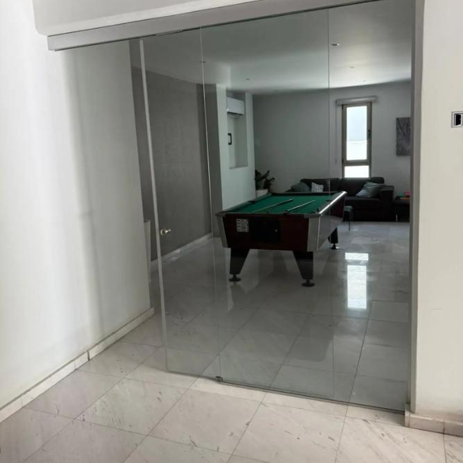Two-bedroom apartment for rent in Faneromeni district, Larnaca. The area of the apartment is about 95 m2, located on the 4th floor. The apartment is equipped with household appliances, includes 2 bedrooms and 2 bathrooms, is equipped with air conditioning in all rooms and has a balcony. The apartment building has an elevator, a games room, a covered underground parking and a storage room. The house was built in 2014 and is located in the central Faneromenis district with convenient access to infrastructure.