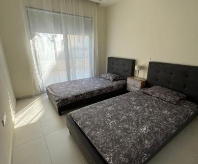 Two-bedroom apartment for rent in Kapparis district, Famagusta city. The apartment is fully furnished, equipped with household appliances and air conditioning, includes 2 bedrooms with a comfortable layout. The apartment is located in a new elite residential complex with a convenient location. There are shops, supermarkets, restaurants, pharmacies, public transport stops and the best beaches within walking distance. The residential complex has a spa center, a gym, a tennis court and a playground.