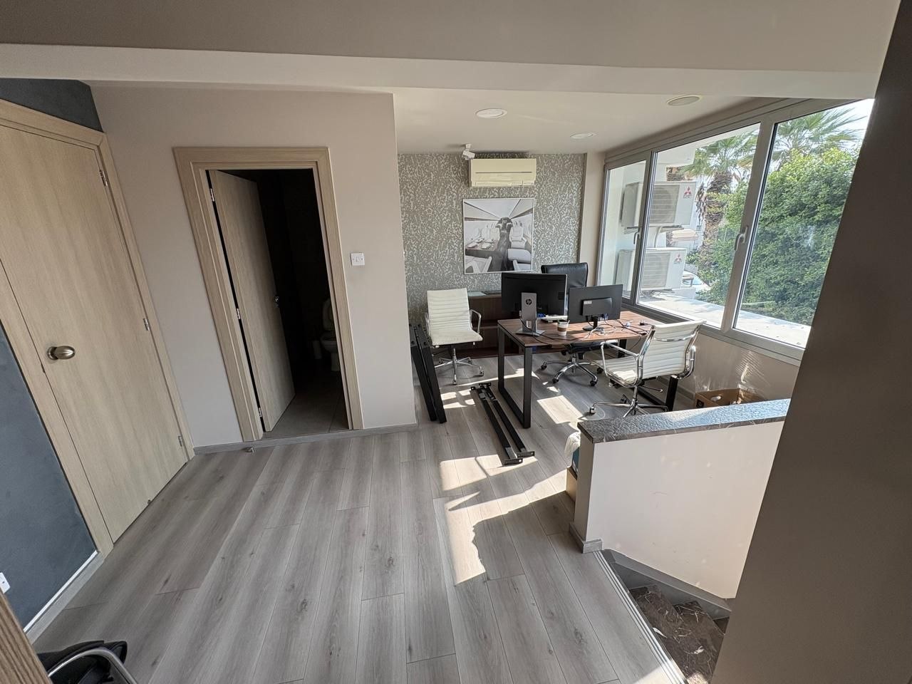Office for rent with an area of 125 m2 in Agia Zoni, Limassol. The office includes a kitchen, a conference room with furniture and 2 bathrooms. The office is equipped with furniture.