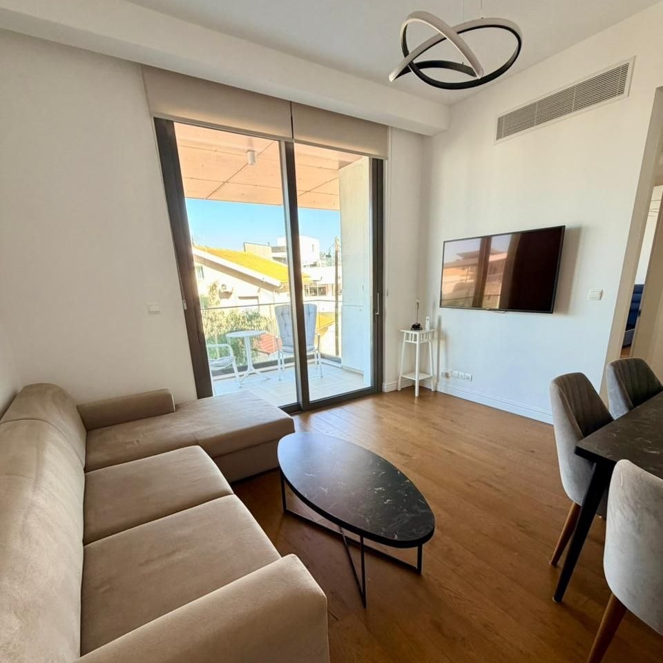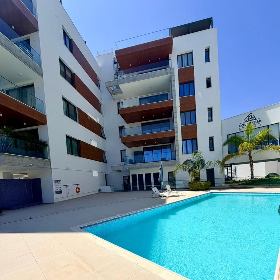 One-bedroom apartment of 65 m2 for rent in Germasogeia Columbia, Limassol. The apartment includes 1 bedroom, 1 bathroom, a kitchen, a living room, a balcony, and a storage room. The apartment is fully furnished and equipped with all necessary household appliances and equipment. The apartment is located on the 2nd floor. The property is located in a gated residential complex with a guarded entrance, swimming pool, gym, covered parking and storage room, with beautiful mountain views.