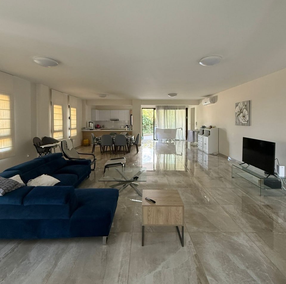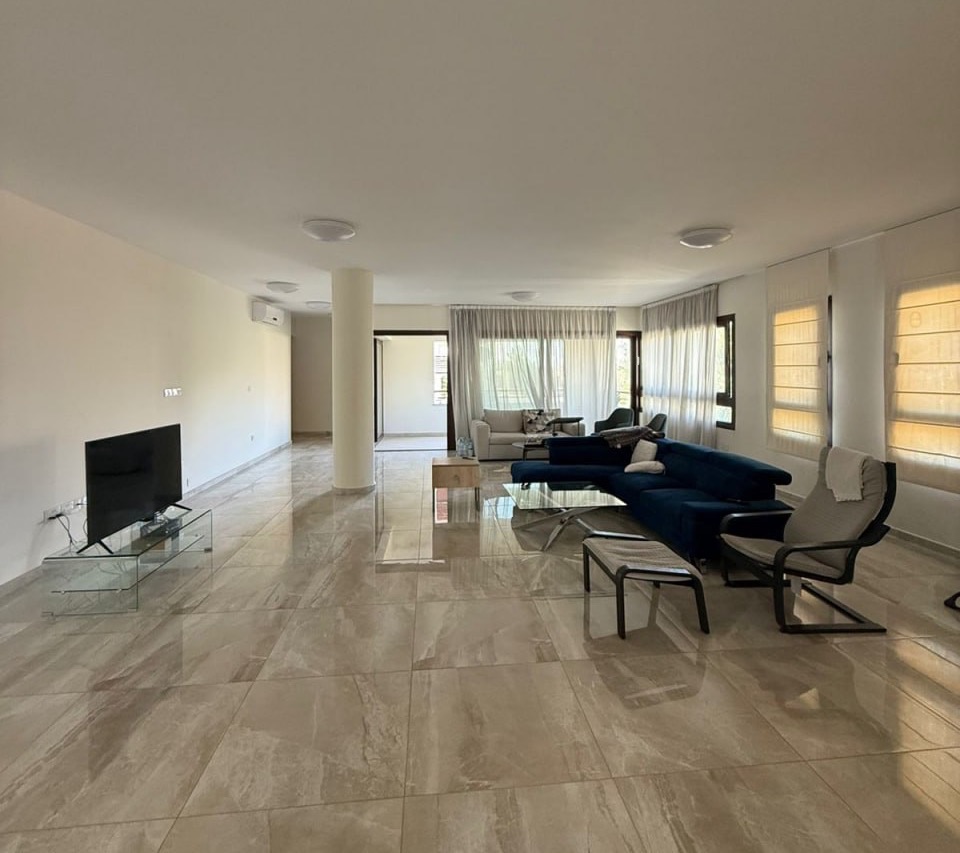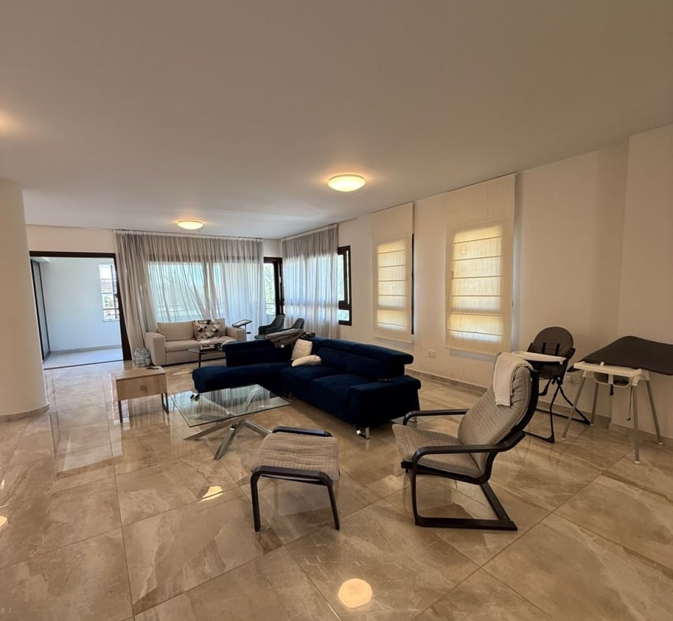 Three-bedroom apartment of 140 m2 for rent in Mouttagiaka, Limassol. The apartment includes 3 bedrooms, 3 bathrooms, a kitchen and a living room. The apartment is fully furnished and equipped with household appliances. The price includes general expenses, outdoor parking is provided, and there is no storage room.