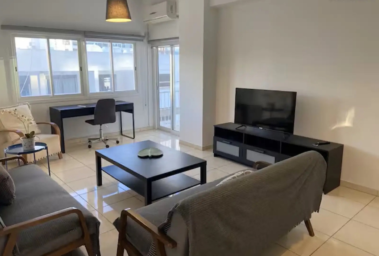 Two-bedroom apartment of 92 m2 for rent in the area of Agioi Omologites, Nicosia. The apartment is fully furnished and equipped with all necessary household appliances. The apartment is located on the 4th floor. The facility is located just 1 minute from Makarios Avenue with convenient access to restaurants, supermarkets, the old town, bars and public transport, the building has an elevator, energy efficiency class B.