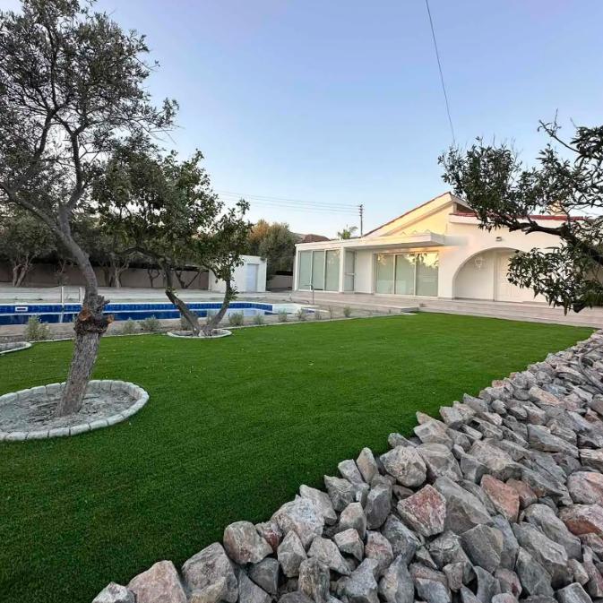 Four bedroom villa for rent in Moni area, Limassol city. The house has an area of 185 m2, a plot of 1260 m2, spacious verandas with a total area of about 105 m2. The villa is fully furnished and equipped with air conditioning in all rooms. The house is renovated, made in a combination of modern and traditional style. The layout includes a spacious open-plan kitchen-living room with access to the pool, 4 bedrooms and 4 bathrooms. There is an additional kitchen and a separate bedroom on the lower level, which is convenient for guests or staff. There is a large private swimming pool, a well—maintained garden with greenery, a barbecue area, outdoor and covered terraces, as well as parking for several cars. The house offers scenic mountain views and a convenient location.