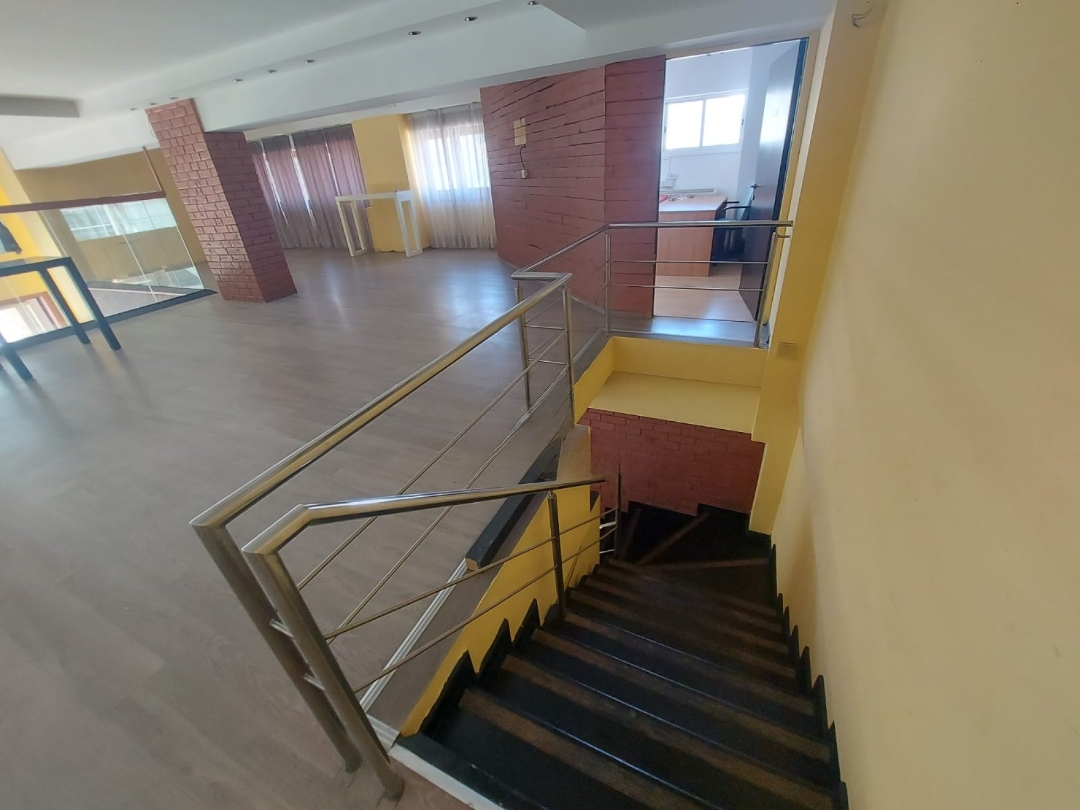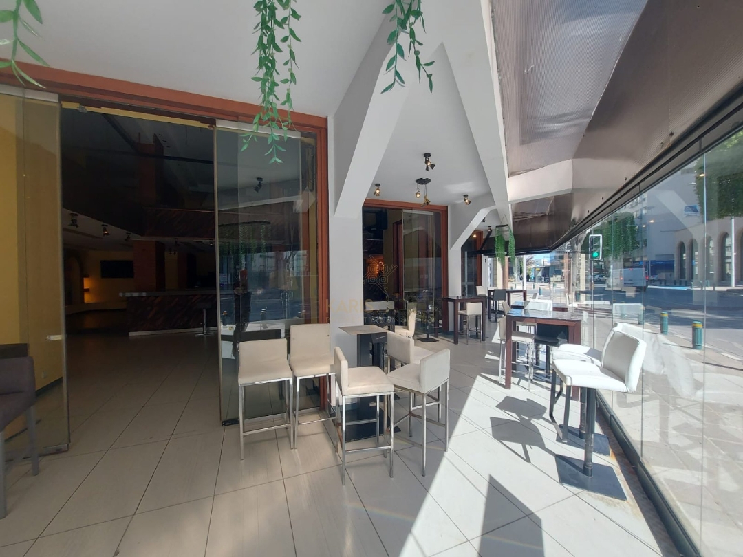 Commercial premises for rent in the Nicosia Center area, Nicosia city with a total area of 548 m2 located in the central part of the city, in an area with high pedestrian traffic and developed commercial infrastructure. Suitable for use as a restaurant, cafe, bar or retail space. The room is divided into levels and includes a ground floor of 213 m2 with an open space for guests and a covered veranda of 45 m2, a mezzanine of 101 m2 with an additional area and a separate office, as well as a basement level of 189 m2 where a professional kitchen, storage rooms and technical areas are located. The space is equipped with bar counters and a kitchen area, an elevator is provided for serving dishes between the levels, ventilation and cooling systems are installed, three-phase electricity is available and preparations have been made for modern engineering and communication systems. The room has bathrooms for guests and staff, including access for people with disabilities. There are four parking spaces on the underground level with direct access to the premises. The location provides excellent visibility and convenient access to public transport, shops, banks, cafes and other commercial facilities are located nearby.