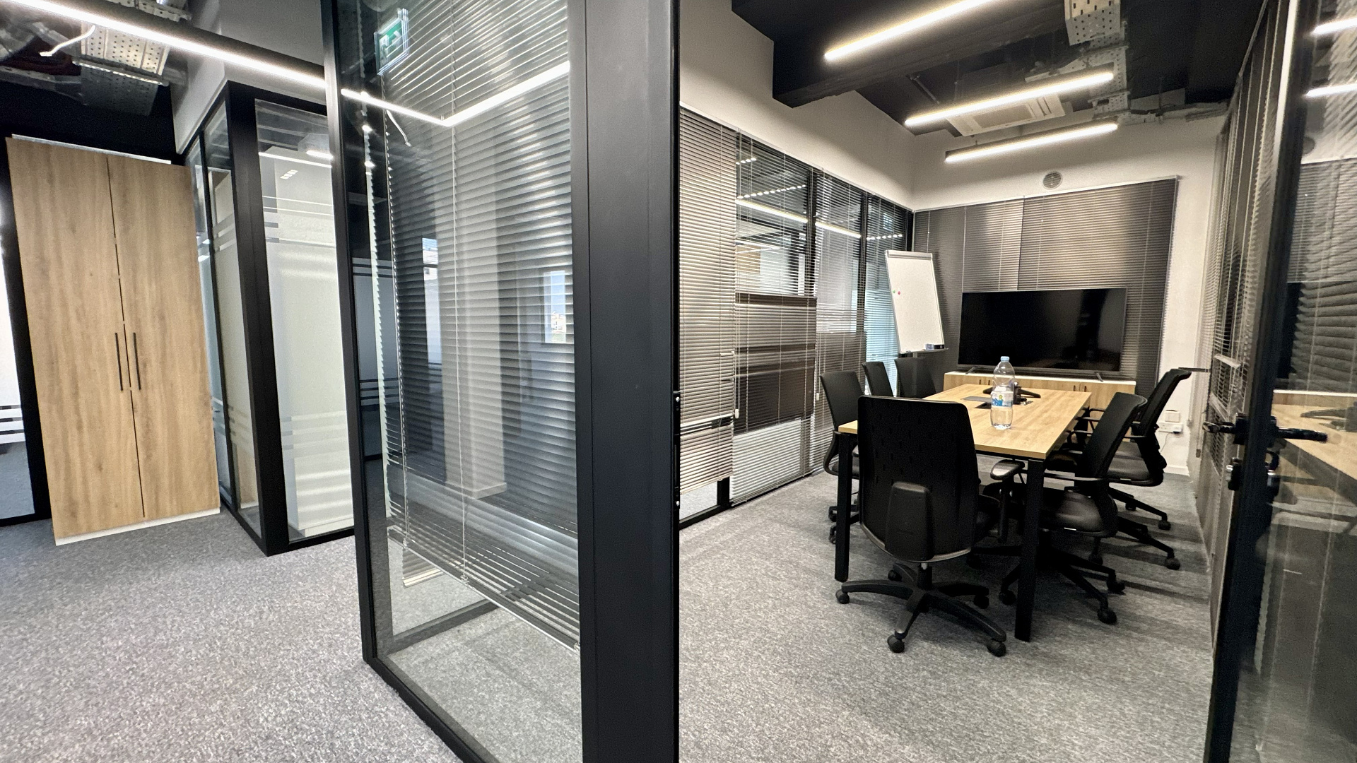 Office space for rent in Limassol city center located on the fourth floor with a total area of 307 m2. The layout is made in a cabinet format and includes thirteen separate offices with an area of 15 to 18 m2 each, a conference room, a reception area, a kitchen, a server room, two bathrooms and a shower room. The office is equipped with a modern VRV air conditioning system that ensures a comfortable climate in all rooms. The tenants have two parking spaces at their disposal. The location in the central part of the city provides convenient access to the business infrastructure, banks, cafes and the main transport hubs of Limassol.