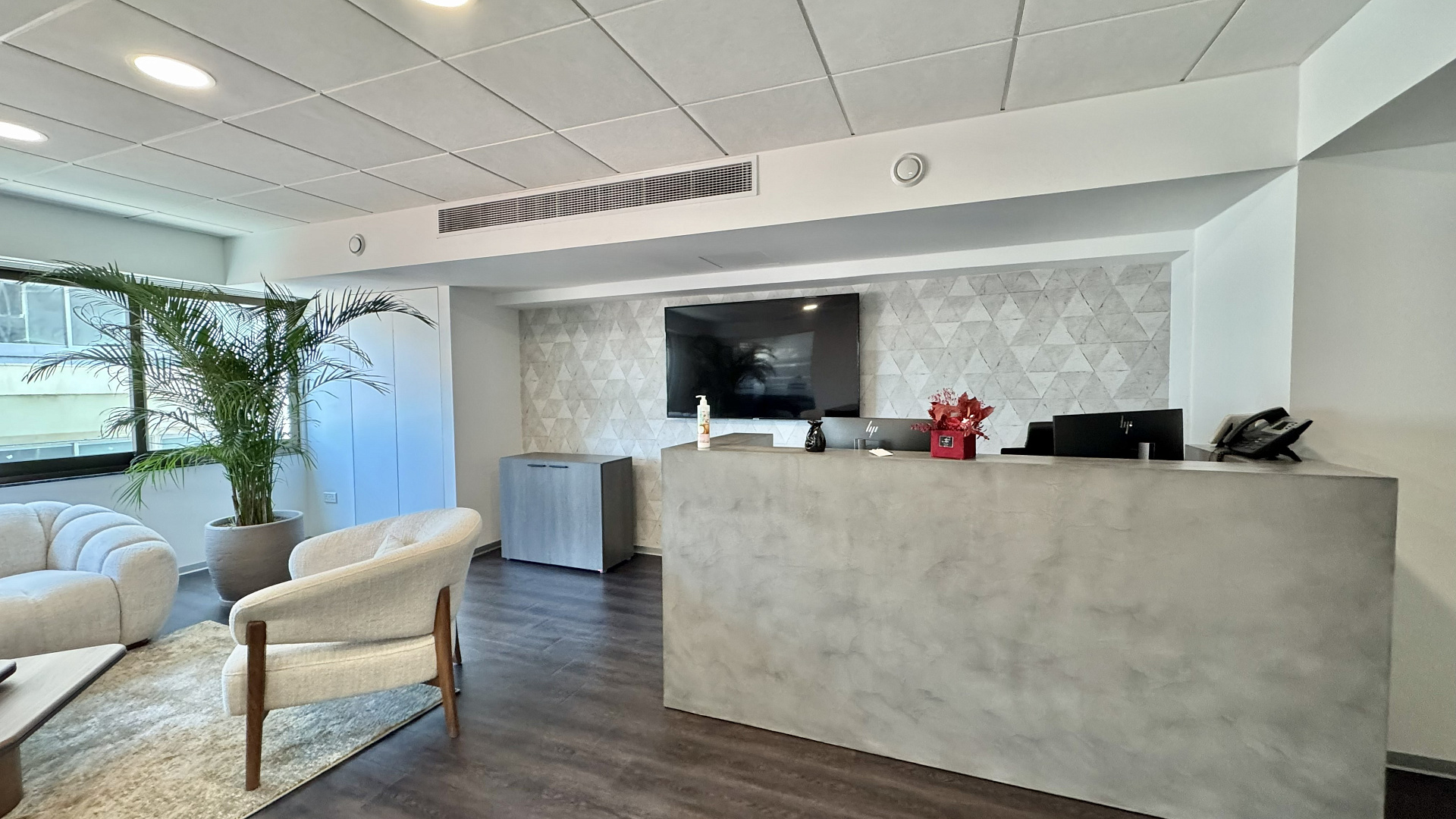 A modern office with an area of 250 m2 for rent in the Limassol Marina area, Limassol city. The office has been completely renovated and is located in one of the best business coastal areas of the city, within walking distance from Limassol Marina and the entire urban infrastructure. The room includes a spacious reception area, a conference room, 10 separate office rooms with glass partitions, a kitchen, a lounge area, three bathrooms, a server room and a shower room in the office of the head. The office is fully furnished and equipped with modern engineering systems: climate control, high-speed fiber-optic Internet, structured cabling system, security and access control system, fire system and supply and exhaust ventilation. The building has elevators and an access control system. The office has a panoramic view of the sea. Its excellent location close to restaurants, banks, cafes and other services makes it an ideal option for a premium business.