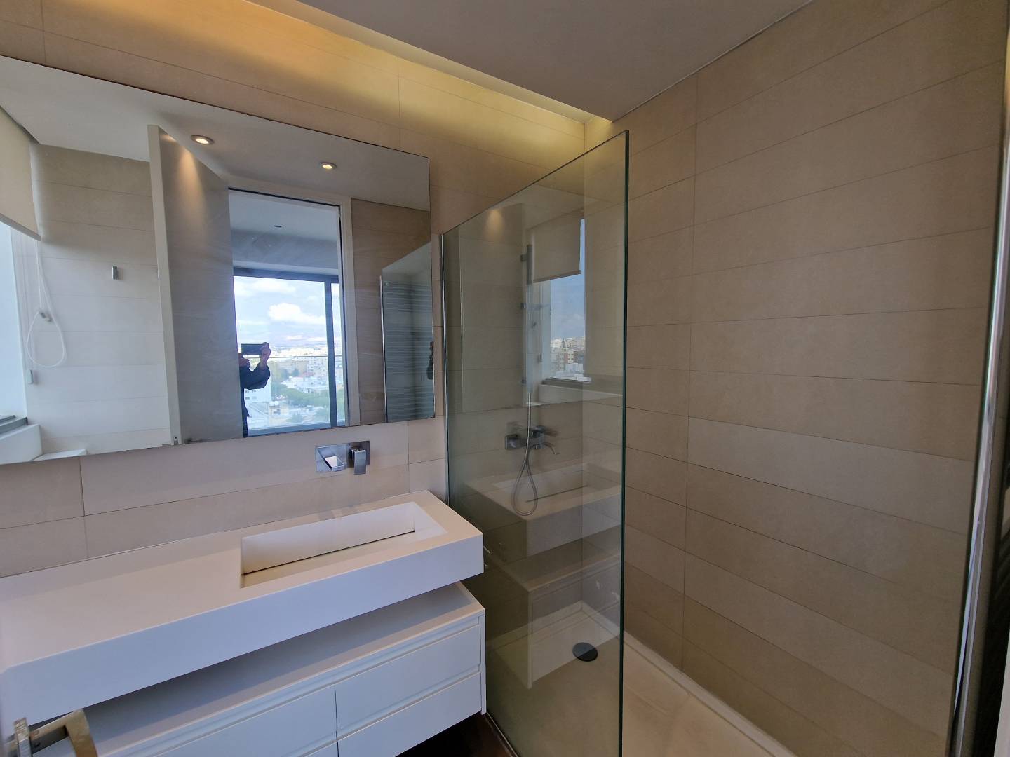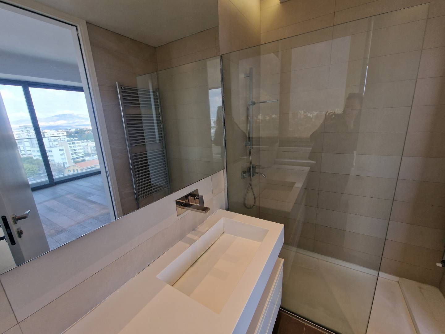 Modern design, spacious living room, open plan kitchen with modern electrical appliances. Wooden flooring, electric shutters in the living room and on the balcony, fireplace, vrv system, safe box, security system. Roof garden with barbecue area and separate toilet room. Incredible view of the mountains and the city.
