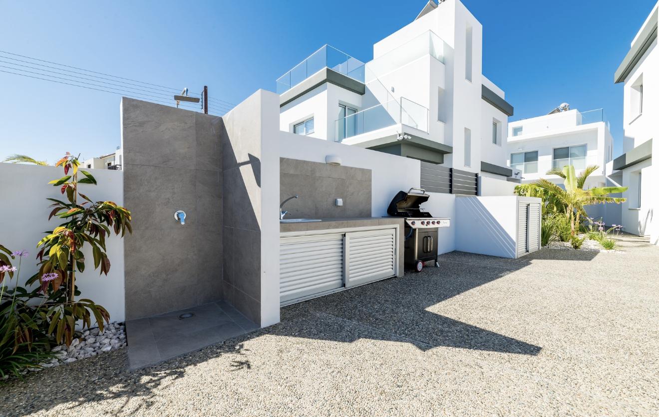 4 bedroom villa for rent in Kapparis. Villa with private pool and Jacuzzi, located in a secluded location, within walking distance to the sea. An additional feature of the house is a roof terrace with a beautiful view of the sea. The villa is fully furnished, equipped with household appliances and air conditioning.