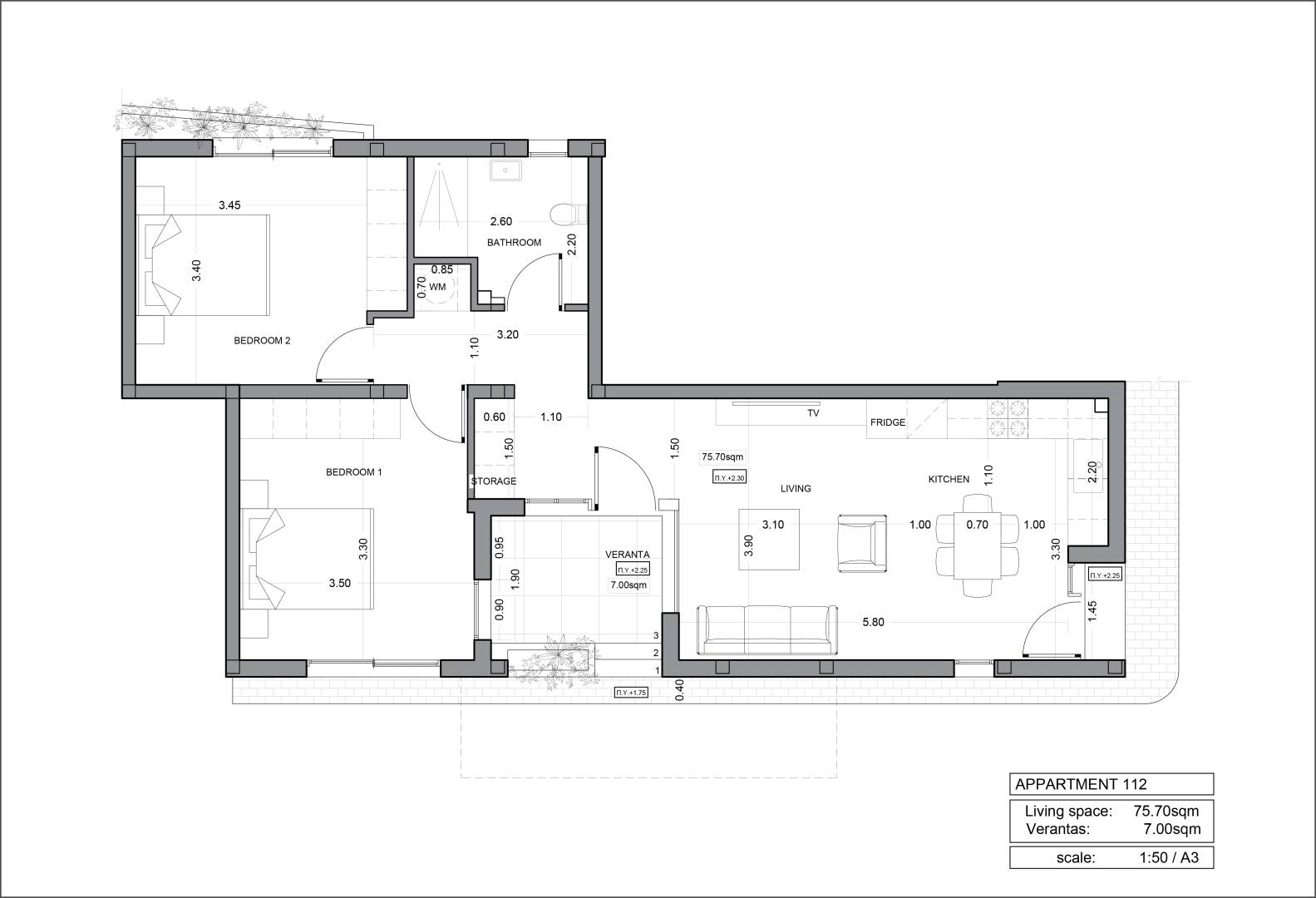 Apartment for sale with high ceilings in a complex under construction in the village of Pyla, 2 km from the beach and 13 km from the center of Larnaca. The roof garden is 47 m2. The apartment will have built-in wardrobes, equipped kitchen and bathroom, balcony, storage room of 4 m2. Each apartment has its own photovoltaic system with a water heater. The entrance to the complex is closed by a gate. Maximum privacy.