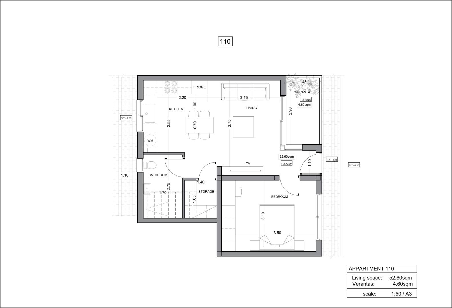 Apartment for sale with high ceilings in a complex under construction in the village of Pyla, 2 km from the beach and 13 km from the center of Larnaca. The roof garden is 47 m2. The apartment will have built-in wardrobes, equipped kitchen and bathroom, balcony, storage room of 4 m2. Each apartment has its own photovoltaic system with a water heater. The entrance to the complex is closed by a gate. Maximum privacy.