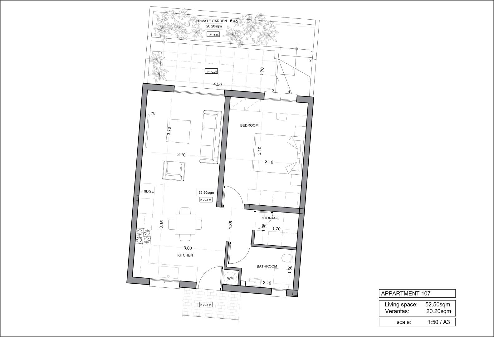 Apartment for sale with high ceilings in a complex under construction in the village of Pyla, 2 km from the beach and 13 km from the center of Larnaca. The roof garden is 47 m2. The apartment will have built-in wardrobes, equipped kitchen and bathroom, balcony, storage room of 4 m2. Each apartment has its own photovoltaic system with a water heater. The entrance to the complex is closed by a gate. Maximum privacy.