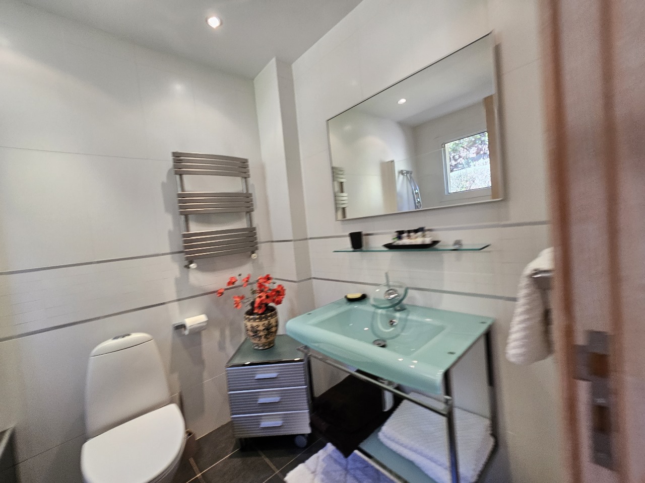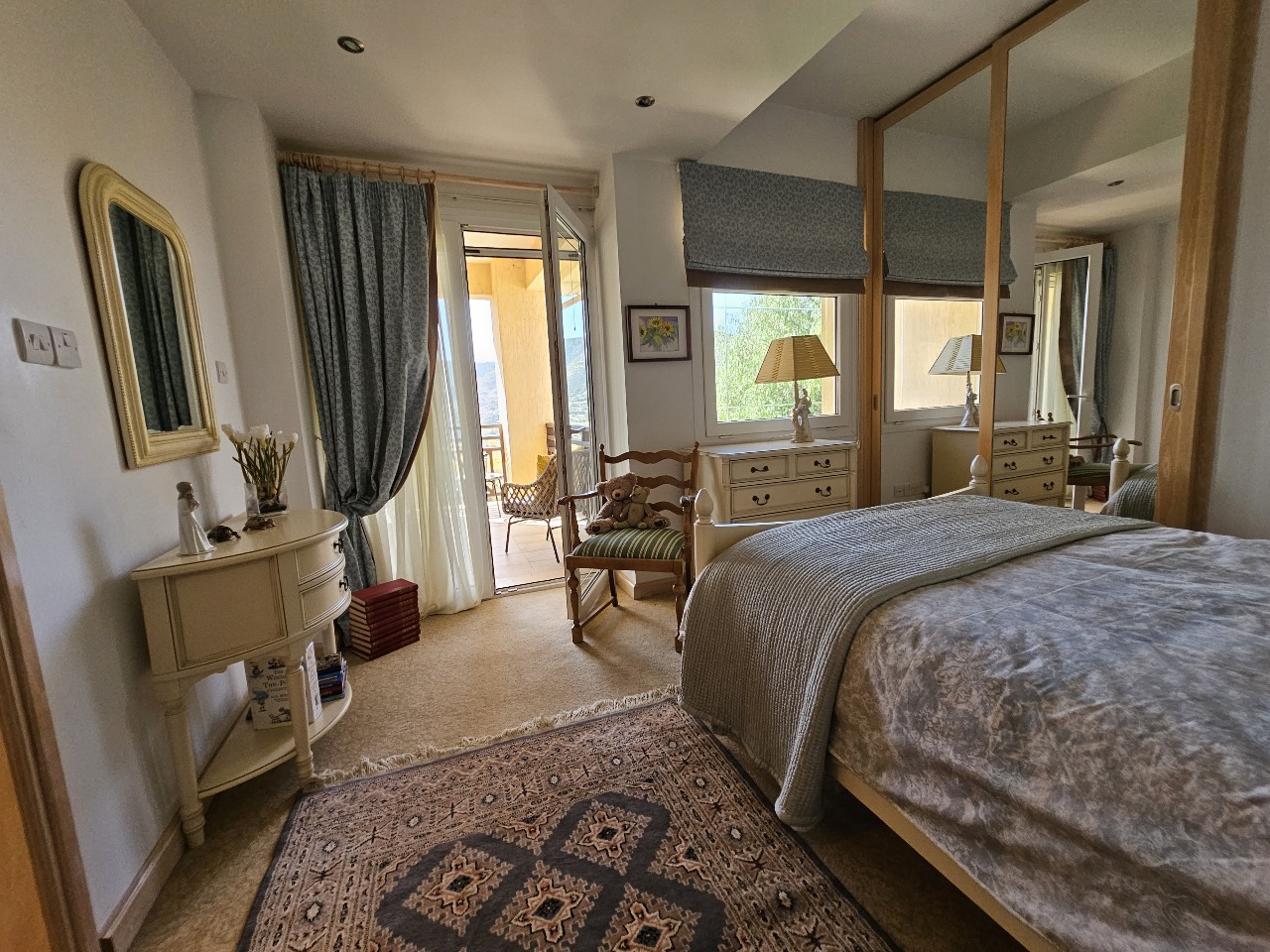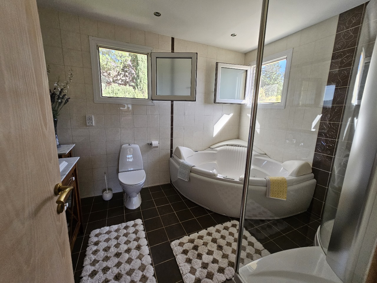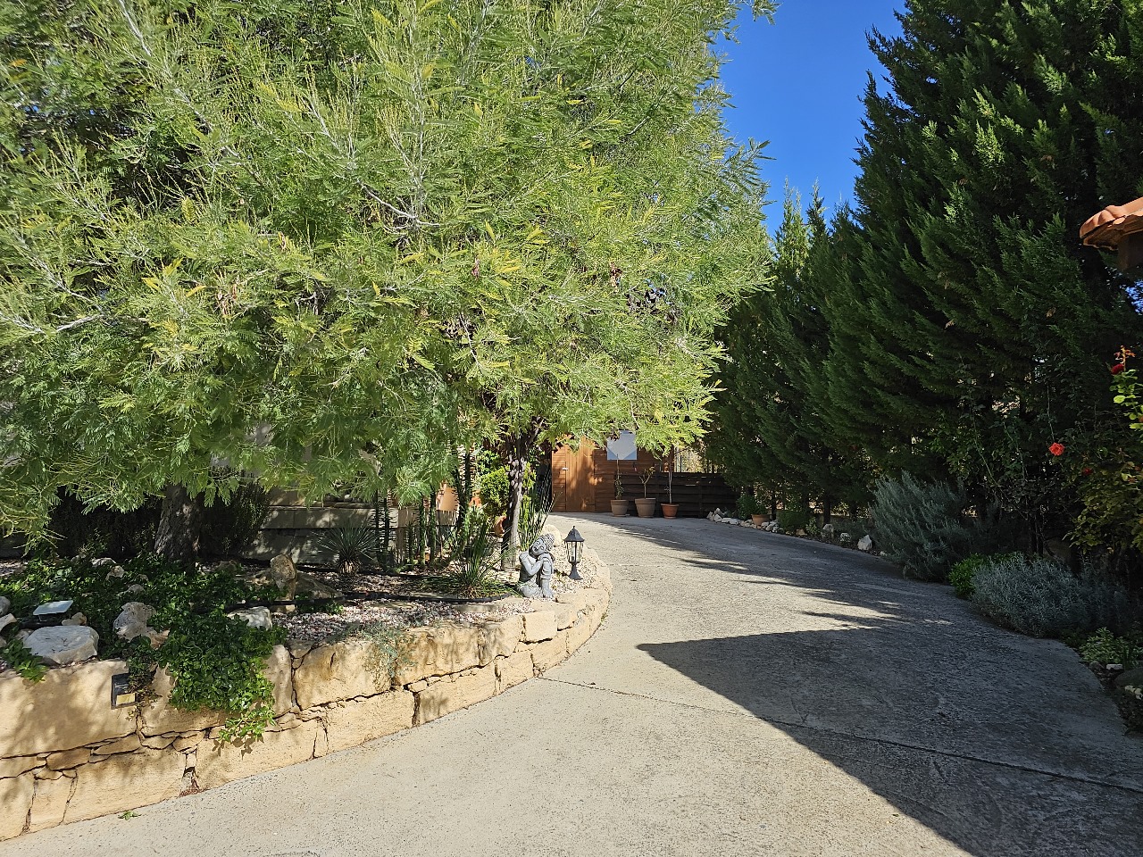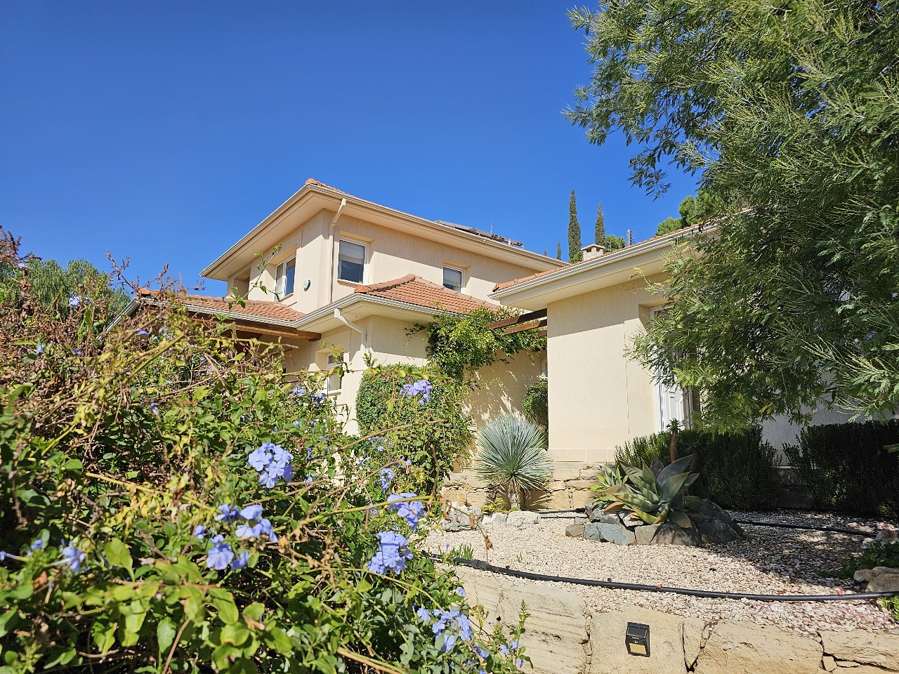Detached duplex villa with pool for sale is located in the beautiful village of Laneia, Limassol district, just 600 meters west of the main Limassol – Trimiklini road. This area has a mild climate, pleasant environment and is located a 20-minute drive from Limassol. The covered area is 400 m2, the land area is 2,361 m2. The villa has an open and unobstructed view to the south. The house was built of very good quality reinforced concrete and brick materials, solid parquet floors, built-in carpet, ceramic tiles. Solid wood entrance door, interior wooden doors and wardrobes, double glazed windows, suspended ceiling with spot lighting and sloping pitched roof, fireplace, central oil heating, split air conditioning system in all living areas. Equipped kitchen with high-quality Gaggenau appliances, alarm system, automatic entrance gates. There is a swimming pool and a barbecue area. In the southern part of the plot there is a private driveway leading to a covered garage for two cars, an additional building and the entrance to the house. The vast area around the house, as well as in the northern part of the plot, is paved with paths made of Cypriot stone and landscaped with a beautifully planted mature garden. An automatic irrigation system has been installed, and it is also irrigated from its own well. The villa consists On the ground floor of an entrance hall, a dining room, a living room, a TV room / study, a kitchen with an informal sitting area and a dining room, an additional kitchen / laundry room, a guest toilet, covered verandas, a patio and a staircase leading to the second floor, The second floor consists of a corridor, a master bedroom with a dressing room, a bathroom with shower and toilet, bedroom with bathroom with toilet, bedroom with bathroom with shower and toilet and two verandas. An annex on the ground floor, consisting of an entrance hall, a bedroom, a kitchenette, a shower room with a toilet and a covered garage of 55 m2.An enclosed garage for two cars, three wooden storerooms, a swimming pool (45 m2), extensive paved paths and a well-maintained garden with lots of trees and plants,