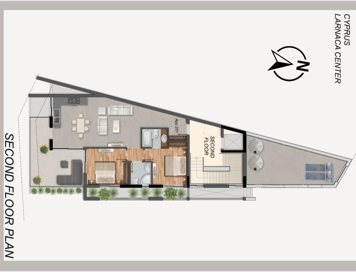 We offer for sale a two-storey duplex in the area of Spiros Kiprianou, Larnaca. With one bedroom on the ground floor, a living room on the ground floor, an open plan kitchen and two bathrooms. The apartment is made in a design style and high-quality finishing work, necessary for a comfortable stay. It includes solar panels and a spacious terrace. It has its own covered parking space and is located near the sea and urban infrastructure, providing convenient access to all necessary facilities.