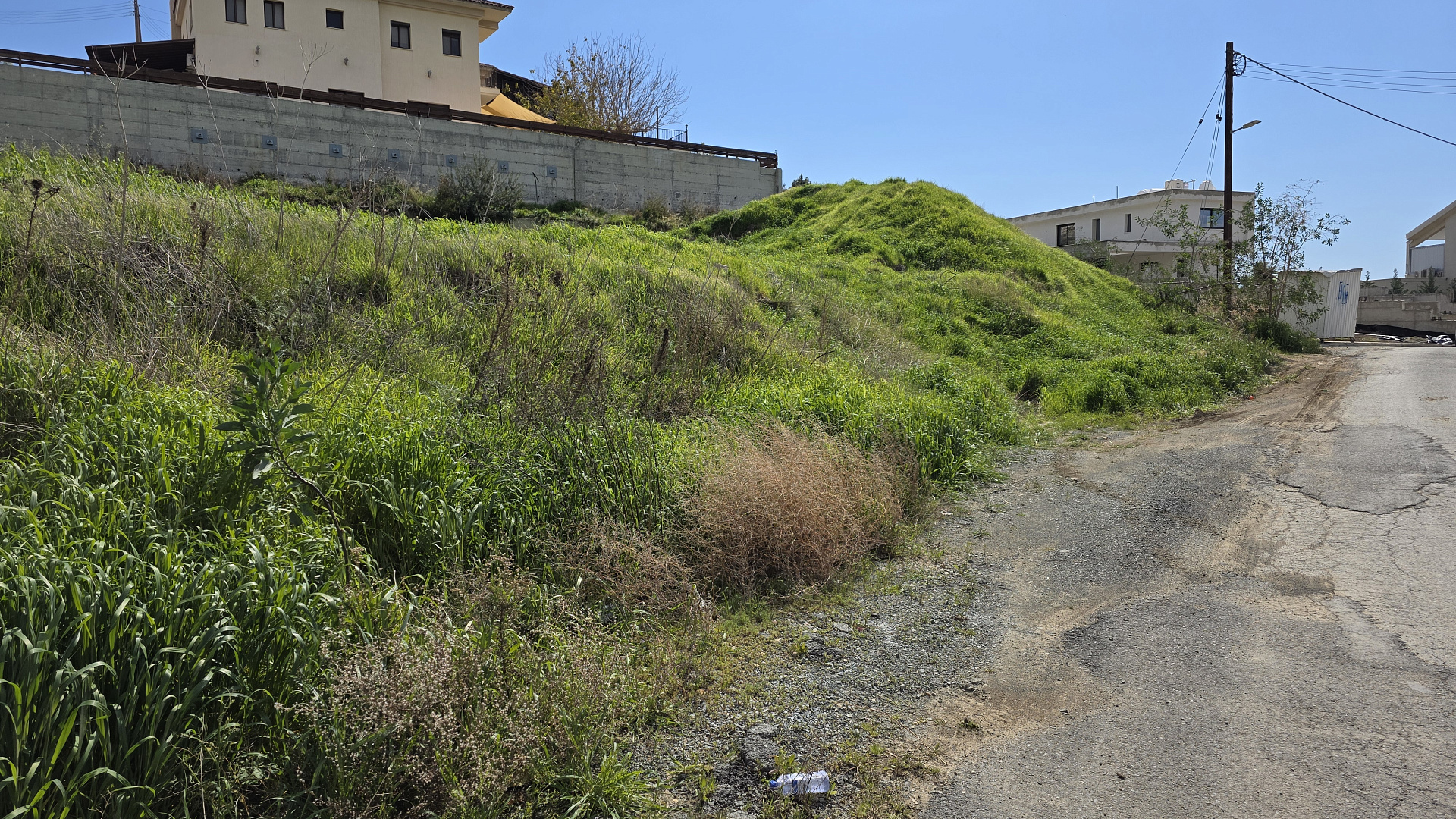 For sale a residential plot in Parekklisia village. It situated at the distance 700 meters from village center and 2750 meters from the beach. It has irregular shape, flat surface and frontage with asphalt road 50 meters. It falls into residential zone H5 with building density 30%, coverage 20%, 2 floors, 8.3 meters height