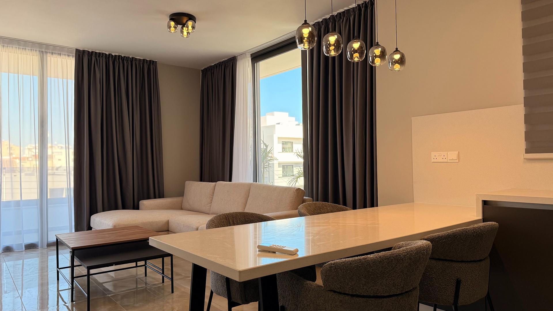 The apartment is located on a quiet residential street just 1 km from the beach, close to main roads, schools, Sklavenitis supermarket, restaurants and business centers.