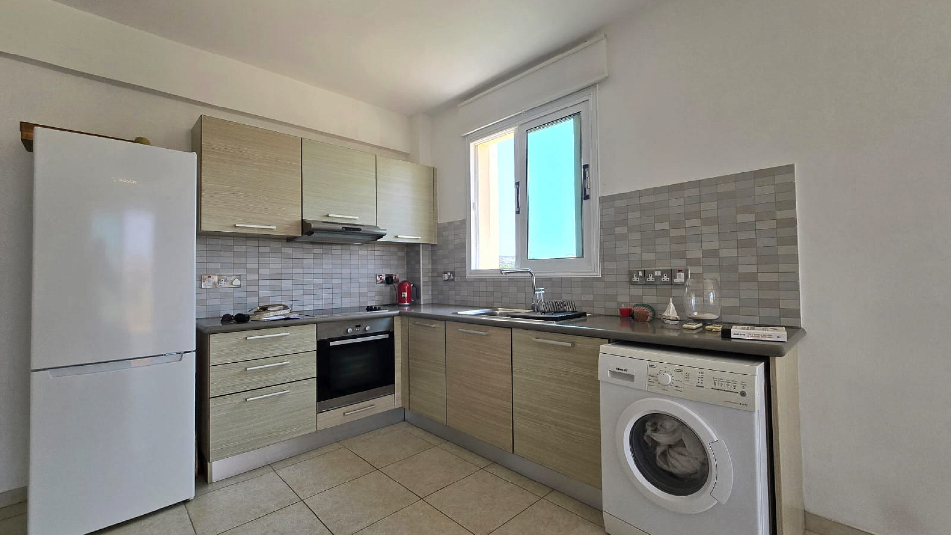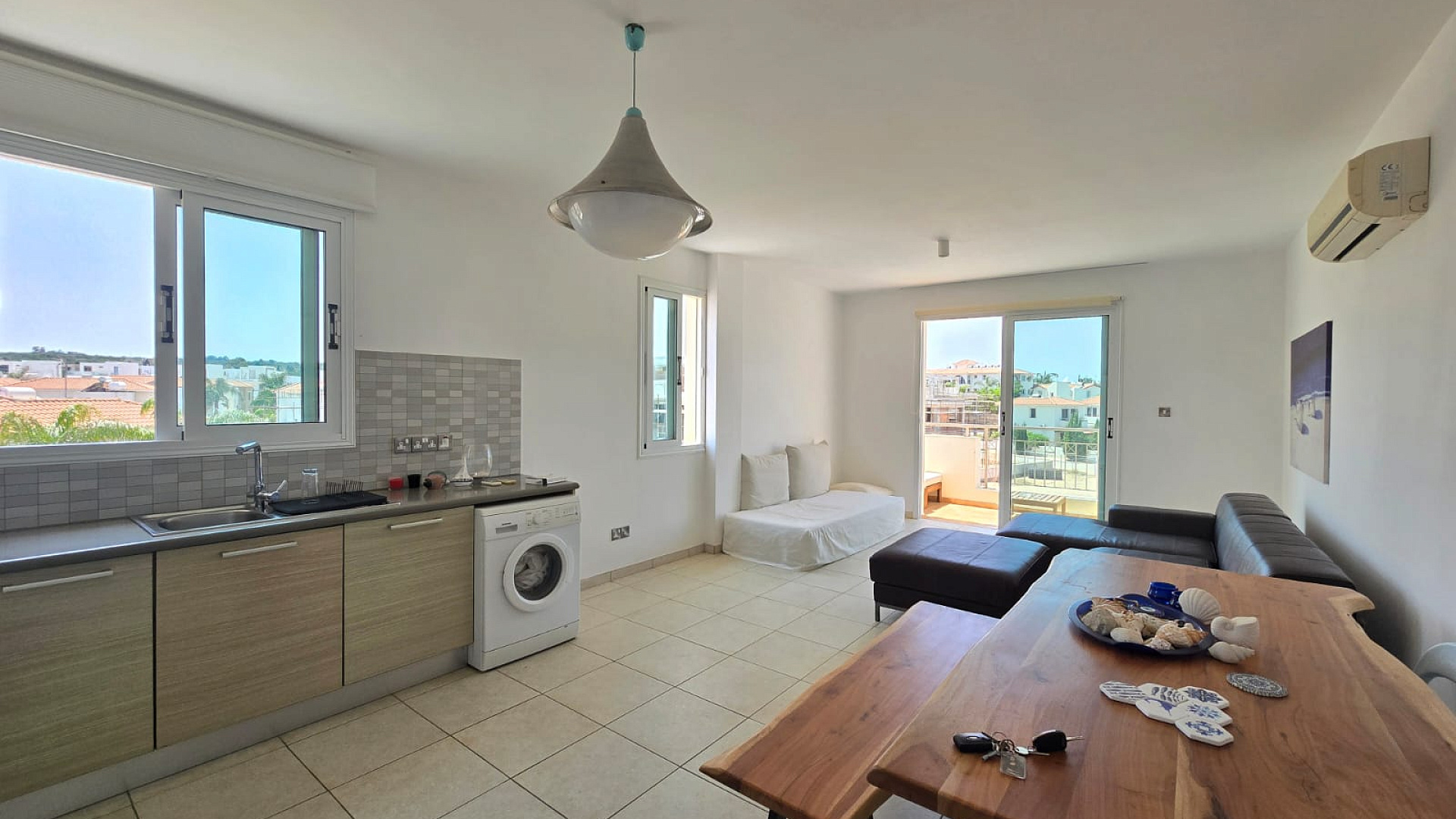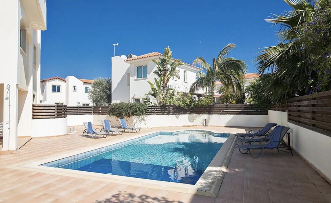 Two-bedroom apartment for sale in the Pernera area of Famagusta. Fully equipped, with covered parking and access to a communal pool. Located within walking distance to the beach. The internal area is 85 m², and the covered veranda measures 10 m². The building was constructed in 2010.