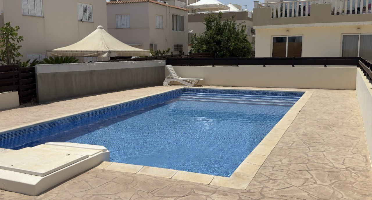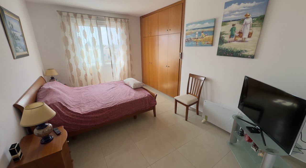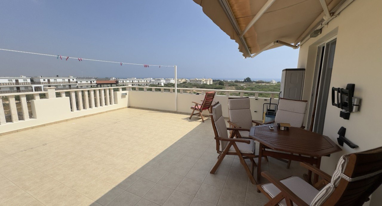 Three-bedroom apartment of 125 m2 for sale in Kapparis district, Protaras city. The apartment includes 3 bedrooms, 1 bathroom, a kitchen, a living room and a spacious veranda of 50 m2. The apartments are fully furnished and equipped with household appliances, including kitchen equipment, air conditioning systems, and also offer amenities such as covered parking and a communal swimming pool. The property is located in the heart of Kapparis district, within walking distance of shops, restaurants, banks, offices and boutiques, as well as just a few minutes walk from the beach. Excellent transport accessibility: 40 minutes drive to Larnaca, 52 km to the airport, bus stops nearby.