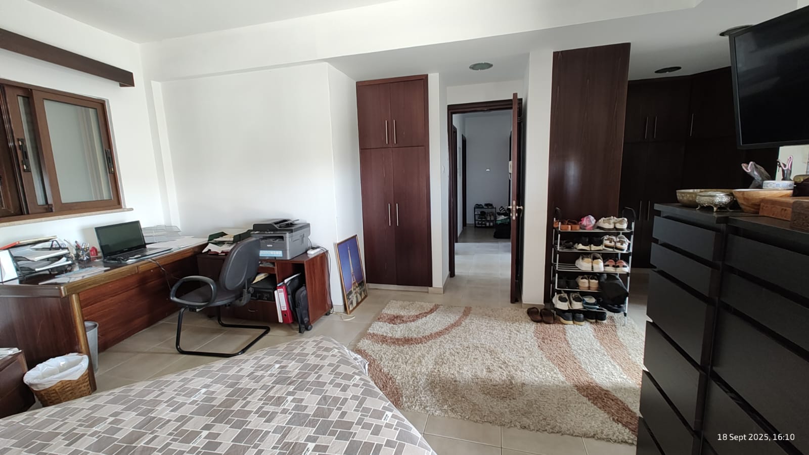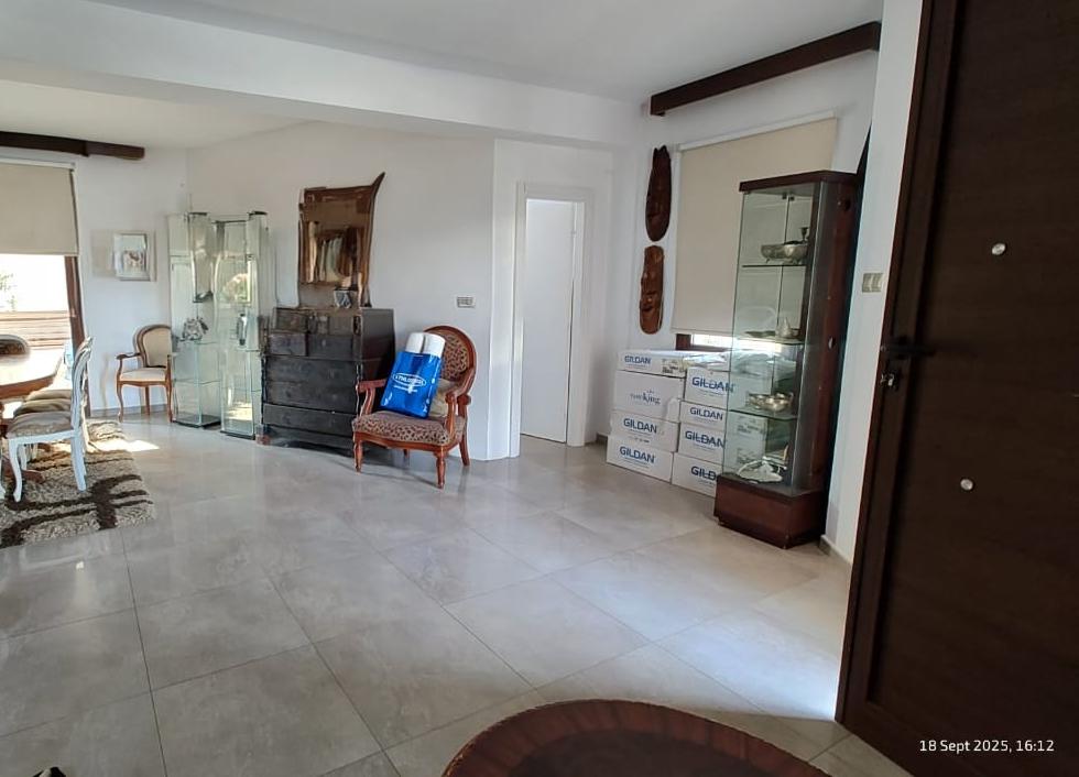 For sale a five-bedroom villa in Sotira, Famagusta, built in 2009. The internal covered area is 243 m², covered verandas 56 m², covered parking 16 m², and storage rooms 8 m². The ground floor offers a living room, dining area, kitchen with dining space, one bedroom, guest toilet, storage room, and verandas. The upper floor includes three bedrooms with en-suite bathrooms, a master bedroom with a walk-in closet, a laundry room, and verandas, as well as an attic. The house is in good condition, equipped with air conditioning, gas underfloor heating, and a fireplace. Finishes include ceramic flooring, aluminum double-glazed windows, wooden cabinets, and granite countertops. The property also features a paved courtyard, parking, storage rooms, and a boiler room. Title Deeds available.