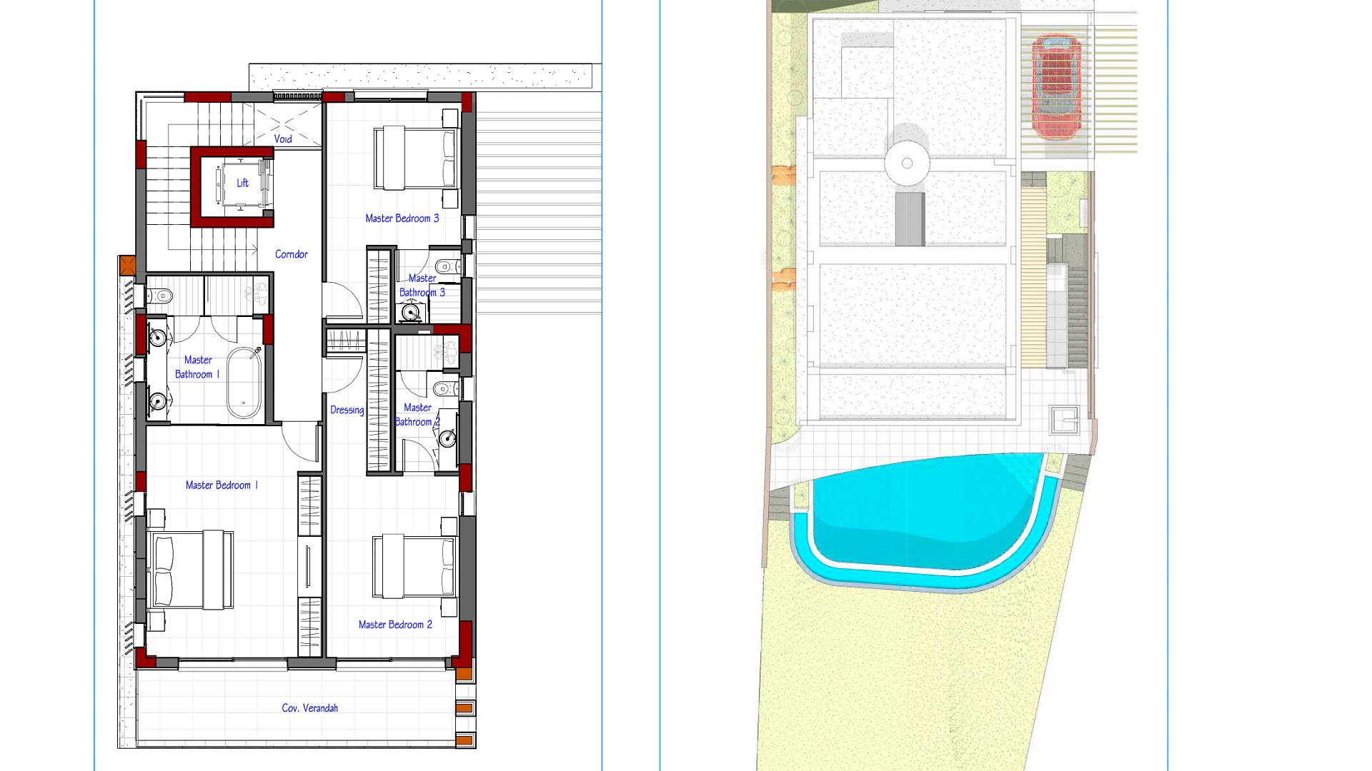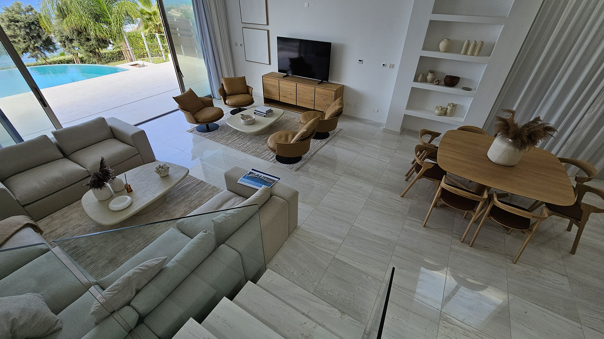 The villa is designed in a modern architectural style and includes spacious bedrooms with bathrooms, a bright living room, an open-plan kitchen-dining room, a private swimming pool, a landscaped garden and relaxation and barbecue areas. Spacious verandas and outdoor terraces create an atmosphere of comfort and harmony.