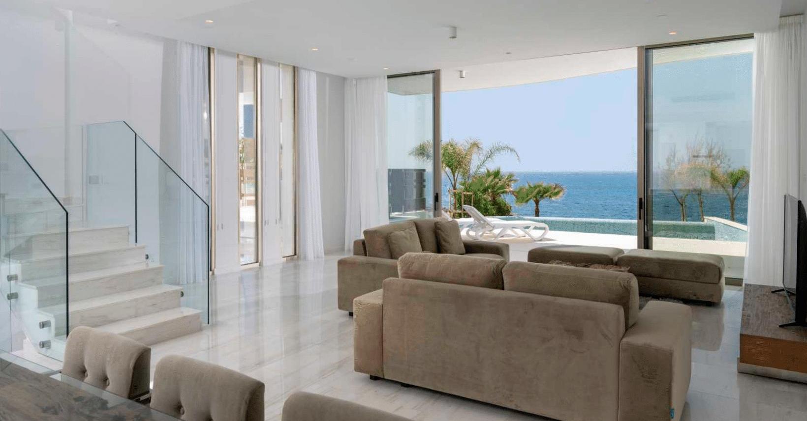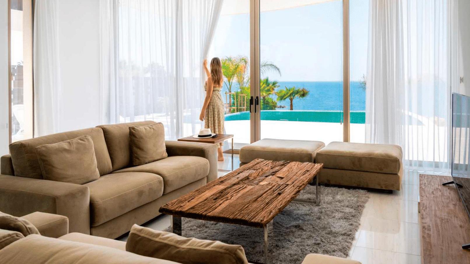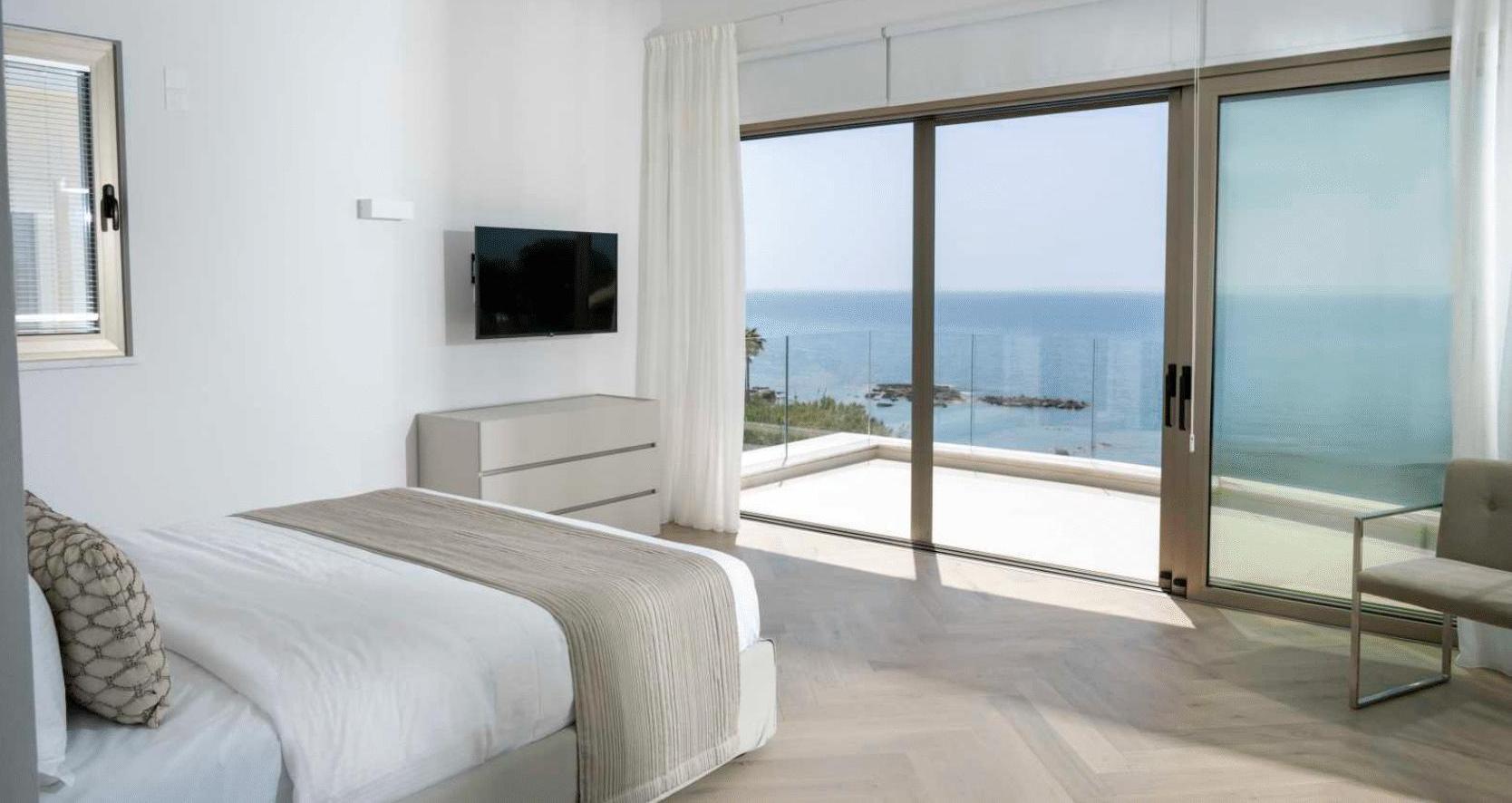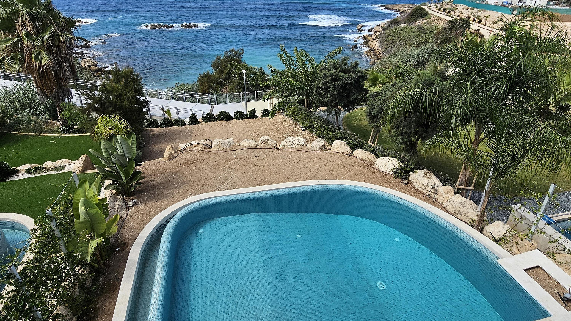 3 bedroom villa for sale in Kissonegra, Paphos. The property is located in a picturesque bay, just a few minutes from the center of Paphos, surrounded by greenery and with panoramic views of the Mediterranean Sea.