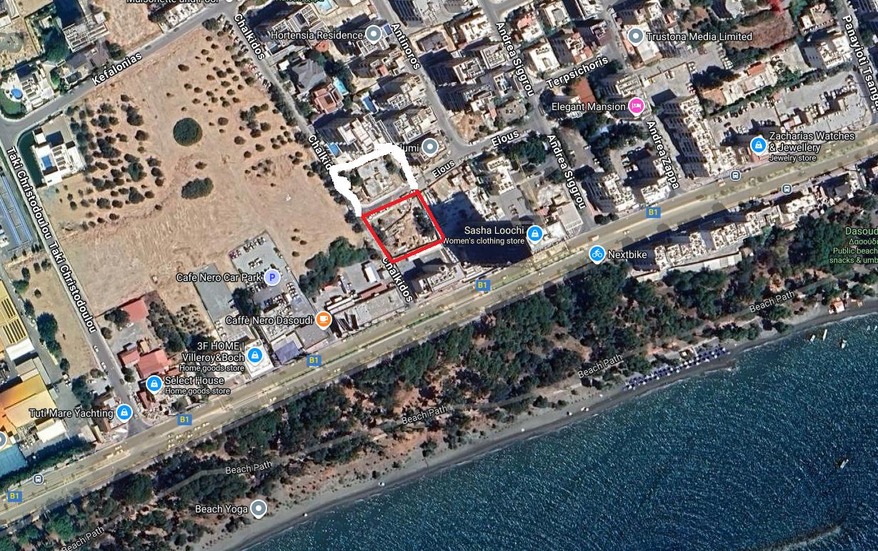 Sale of a touristic plot in Germasogeia tourist area, opposite Dasoudi park. It's situated at the distance 90 meters from Dasoudi park, has regular shape, flat surface and frontage with a street. It falls into planning zone ΤΓ5 with building density 100%, coverage 50%, 3 floors, 13.5 meters.