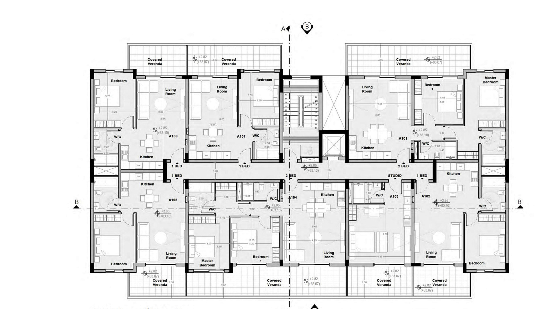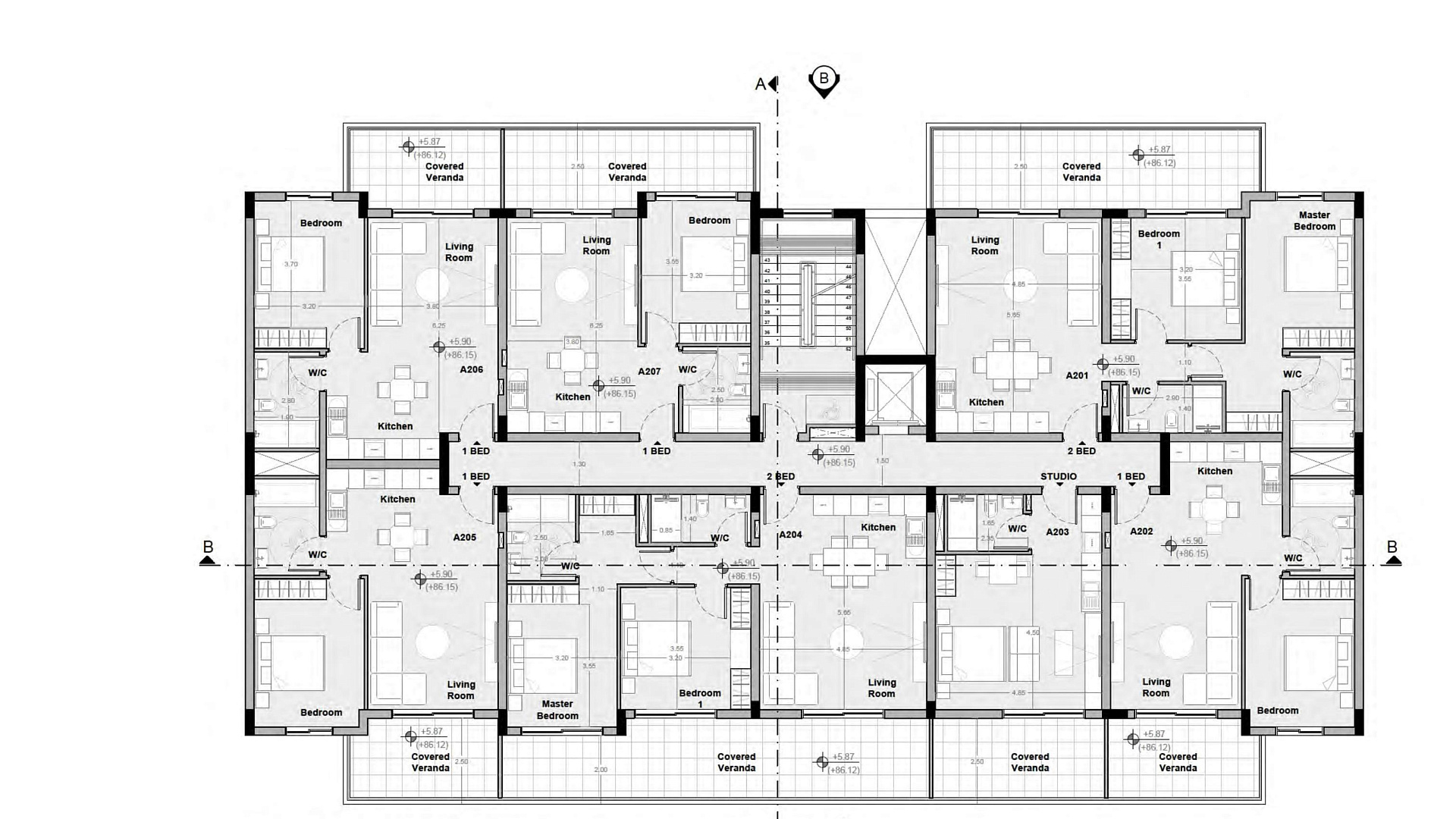 Apartment for sale in Geroskipou area, Paphos. A modern residential complex of a closed type with a low number of floors offers a comfortable and safe living environment. Residents have outdoor pools, a gym, and well—maintained common areas at their disposal. Split air conditioning systems are provided in all rooms. The hot and cold water supply system is implemented using high-pressure pipes, and solar collectors with a hot water tank and an electric heating element are installed. All apartments are finished using high-quality materials and are already included in the price of housing. The project is located just 5 minutes from Rikkos Beach, one of the best sandy beaches in Paphos. The convenient location, modern design and high level of construction make this offer an excellent option for both your own living and investment.