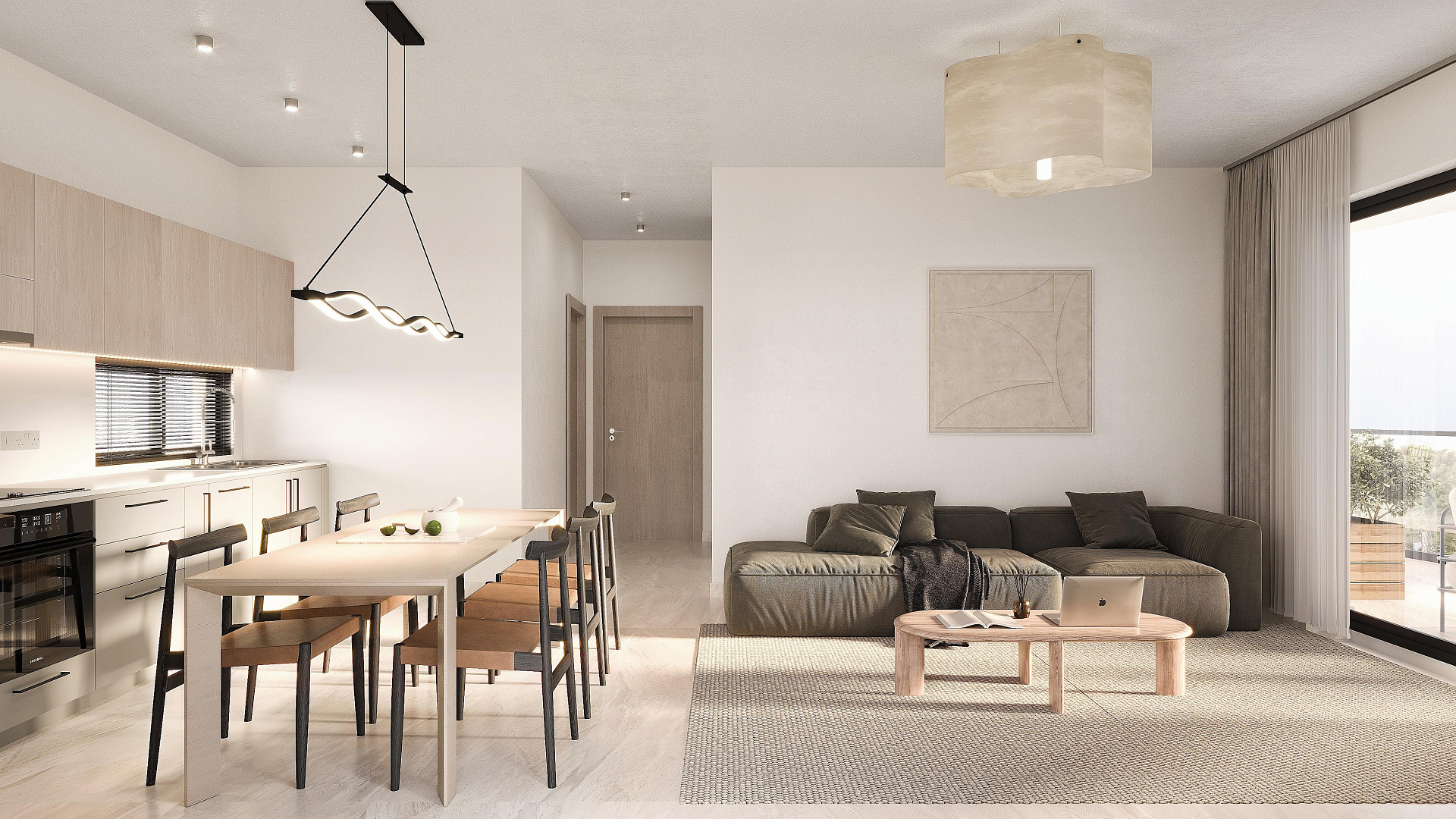 Each apartment in the complex is designed with maximum comfort in mind. The project includes an open-plan living room and kitchen, as well as a covered veranda. Parking and a private storage room are also available.