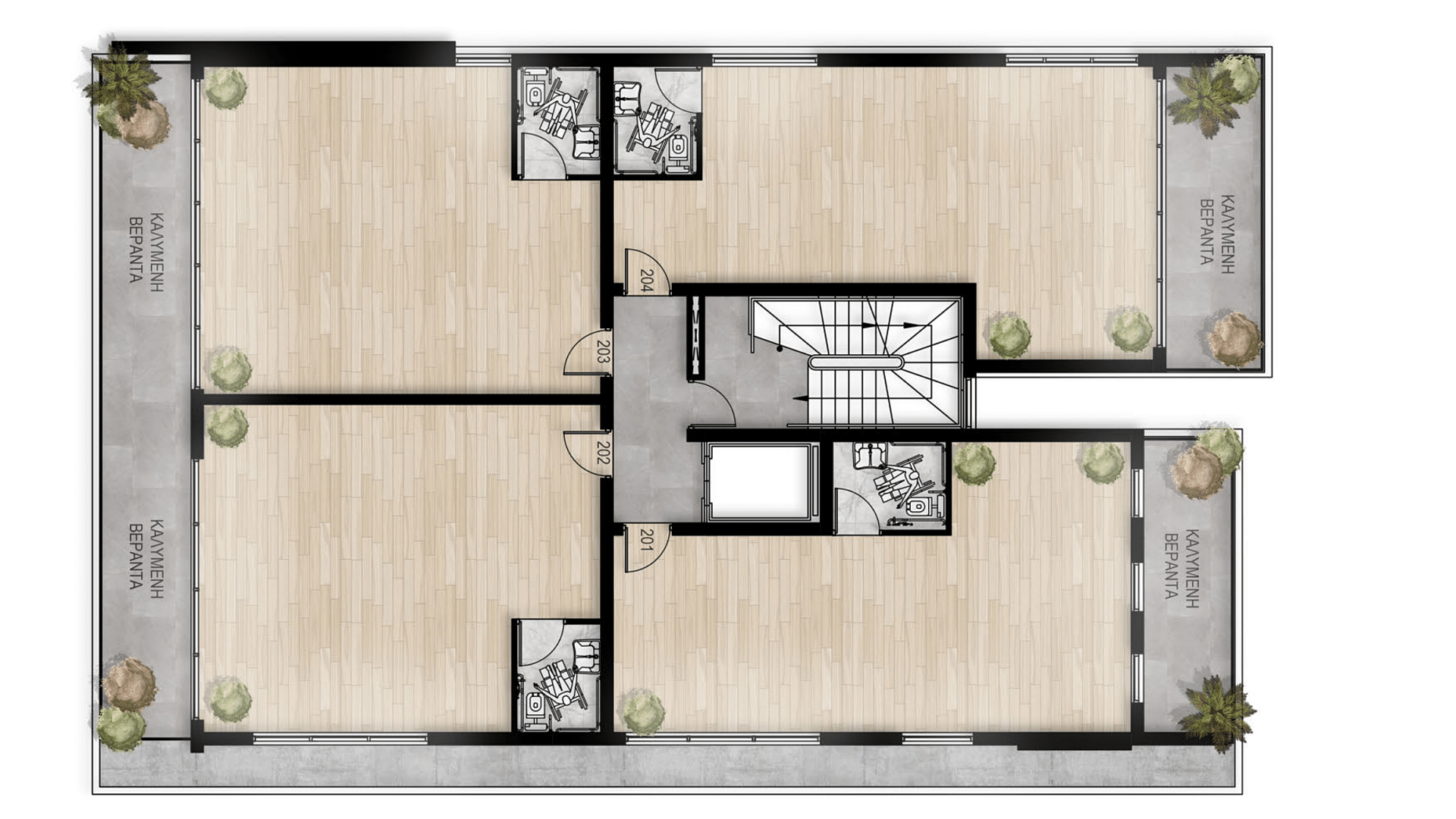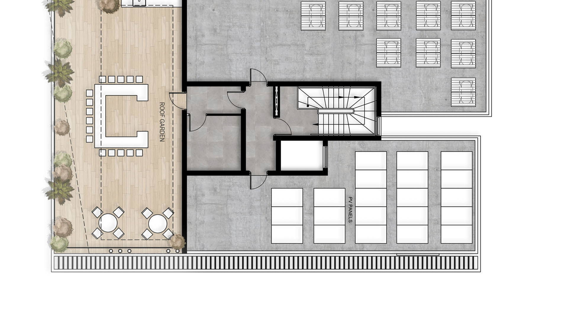Special attention is paid to comfort and technology: large verandas, parking, thermal and sound insulation systems, air conditioning, video surveillance, as well as a shared 118 m2 roof terrace, ideal for relaxing. With its modern design, high-quality construction and central location, this office represents an excellent business and investment opportunity in the dynamically developing Limassol area.