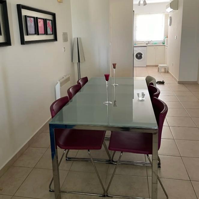 For sale a three-bedroom apartment in the Kapparis Famagusta area with a total area of 126 m2, located on the ground floor of a residential complex. The apartment has a comfortable layout with a spacious living room, a separate kitchen, two bathrooms and a large veranda. Air conditioners are installed in all rooms, the apartment is sold with household appliances. Covered parking is available. There are titles of ownership.