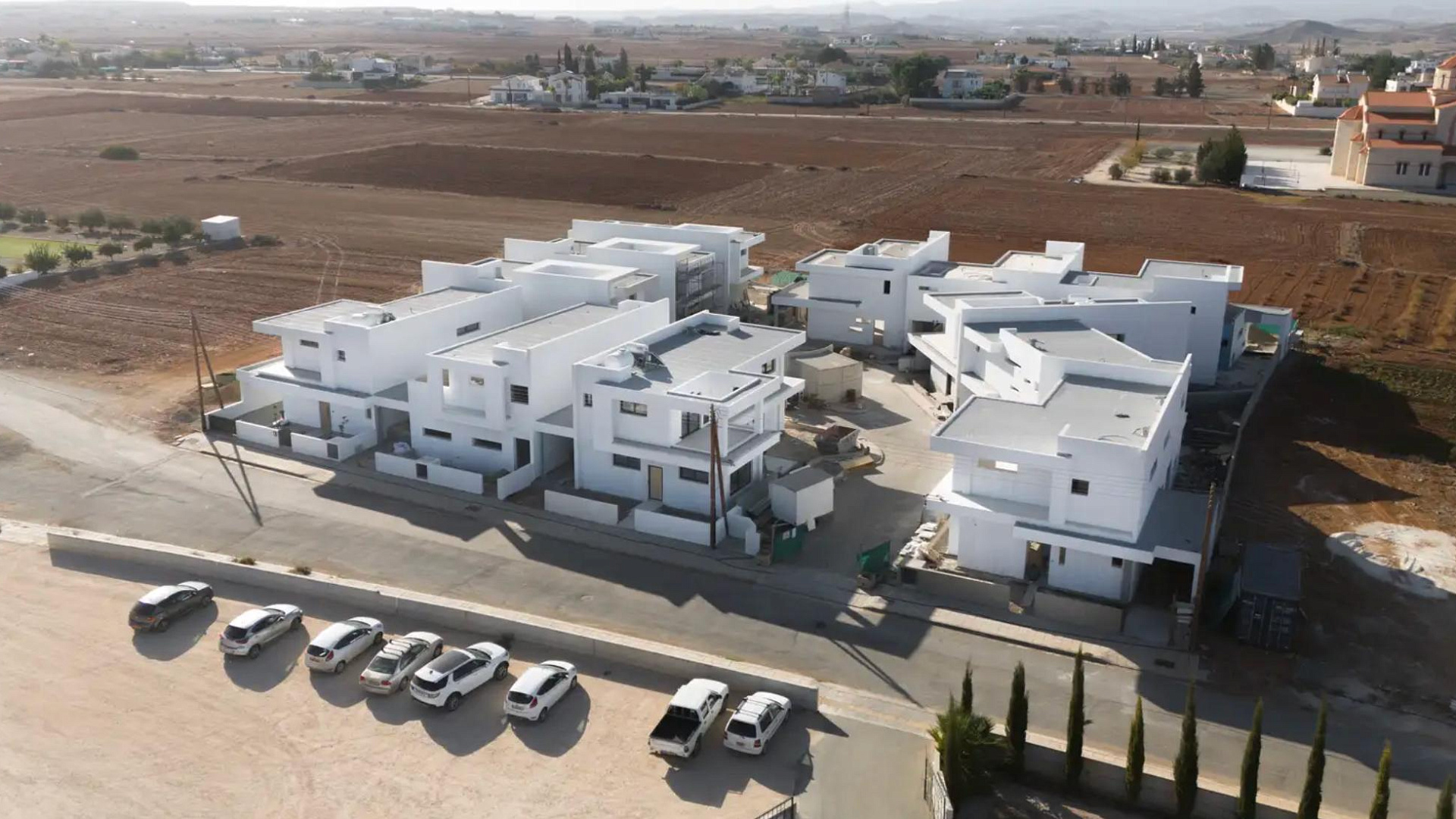 Villa for sale in the area of Agioi Trimithias. This complex offers 12 elegant two-storey houses, in which modern design perfectly combines with the tranquility of rural life. The metal-framed house has two levels, an open-plan kitchen and living room, three bedrooms, covered and open terraces, and a balcony. The total land area of the complex is 4238 m2.