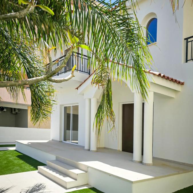 For sale a five-bedroom villa in the area of Sotiros, Larnaca, with a total area of 265 m2, located on a plot of 392 m2. The house was completely renovated in 2025. On the ground floor there is a spacious living room, a dining area, a fully equipped kitchen with modern appliances, an additional kitchen and dining room, an office, and one bathroom. On the second floor there are four bedrooms, including the main one with en-suite bathroom, and a spacious bathroom with shower. The villa has three covered verandas, a large garden, covered parking for three cars. It is fully equipped with an air conditioning system in all rooms. Located in a prestigious area of the city, just a few minutes walk from the center of Larnaca and Finikoudes beach, close to shops, schools and the entire urban infrastructure.