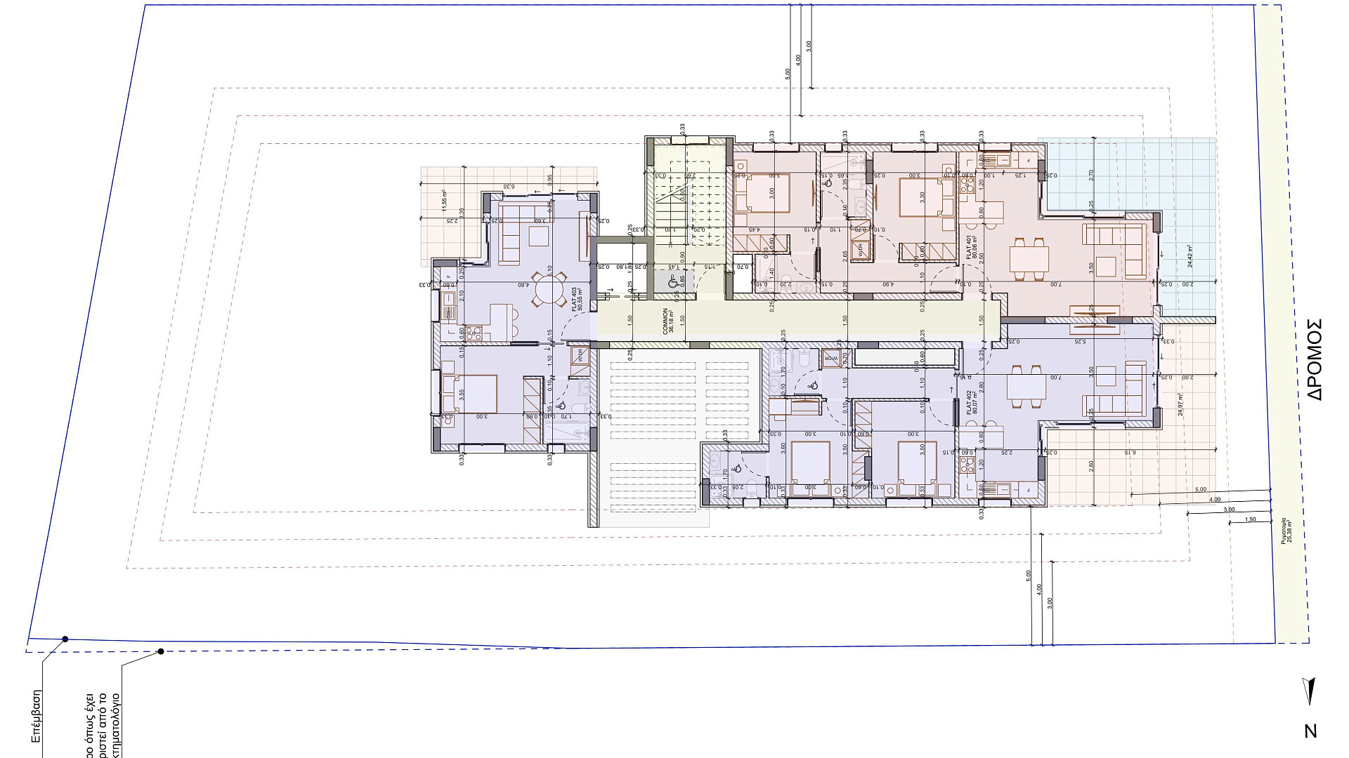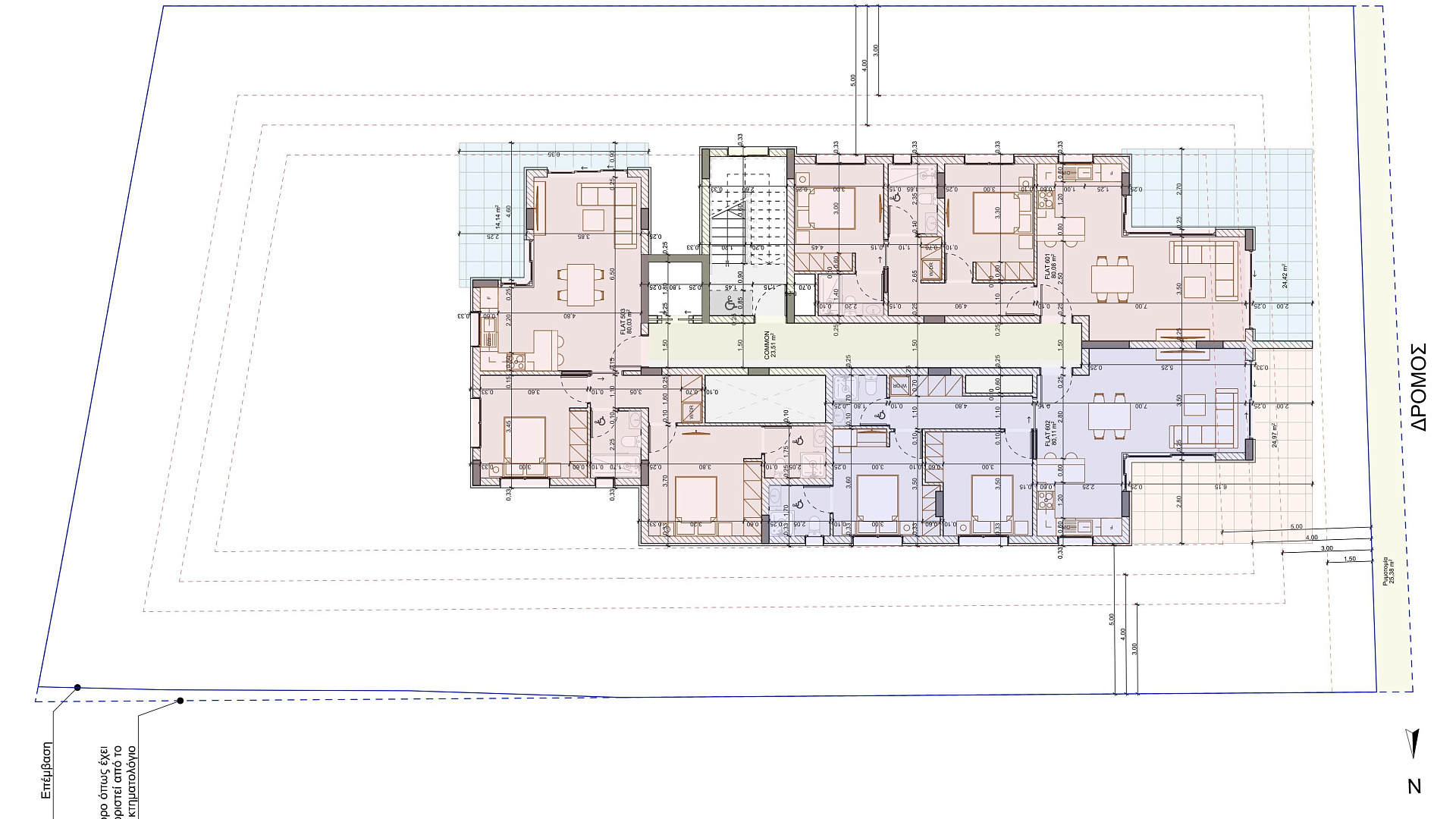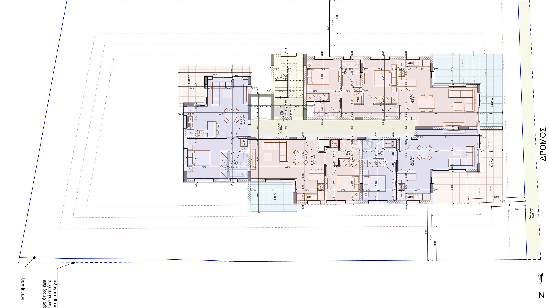 The complex is located in an area that has theaters, public and private schools, a stadium, the new Metropolis shopping center, St. George Kontos Church, and the city's general hospital.