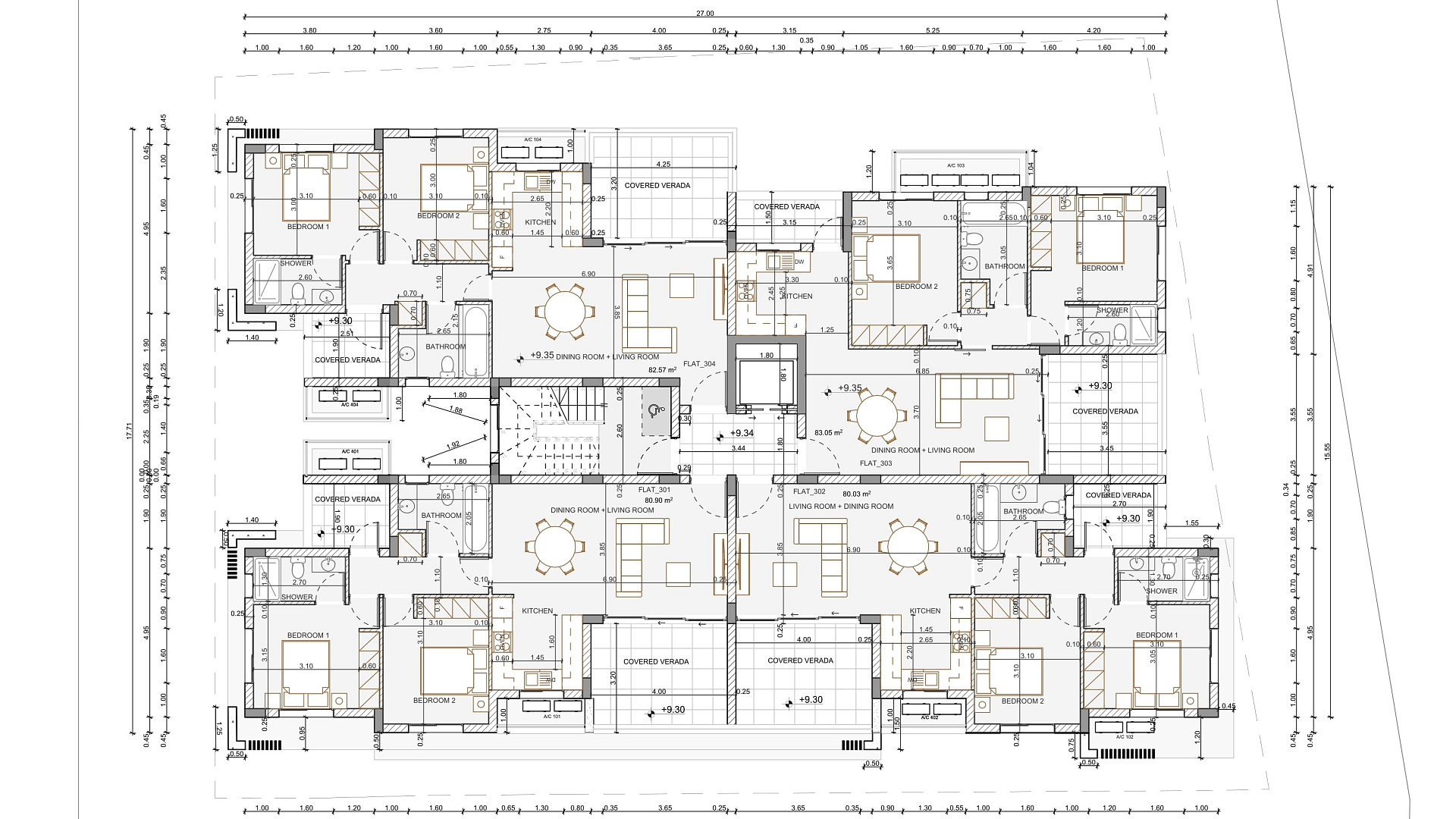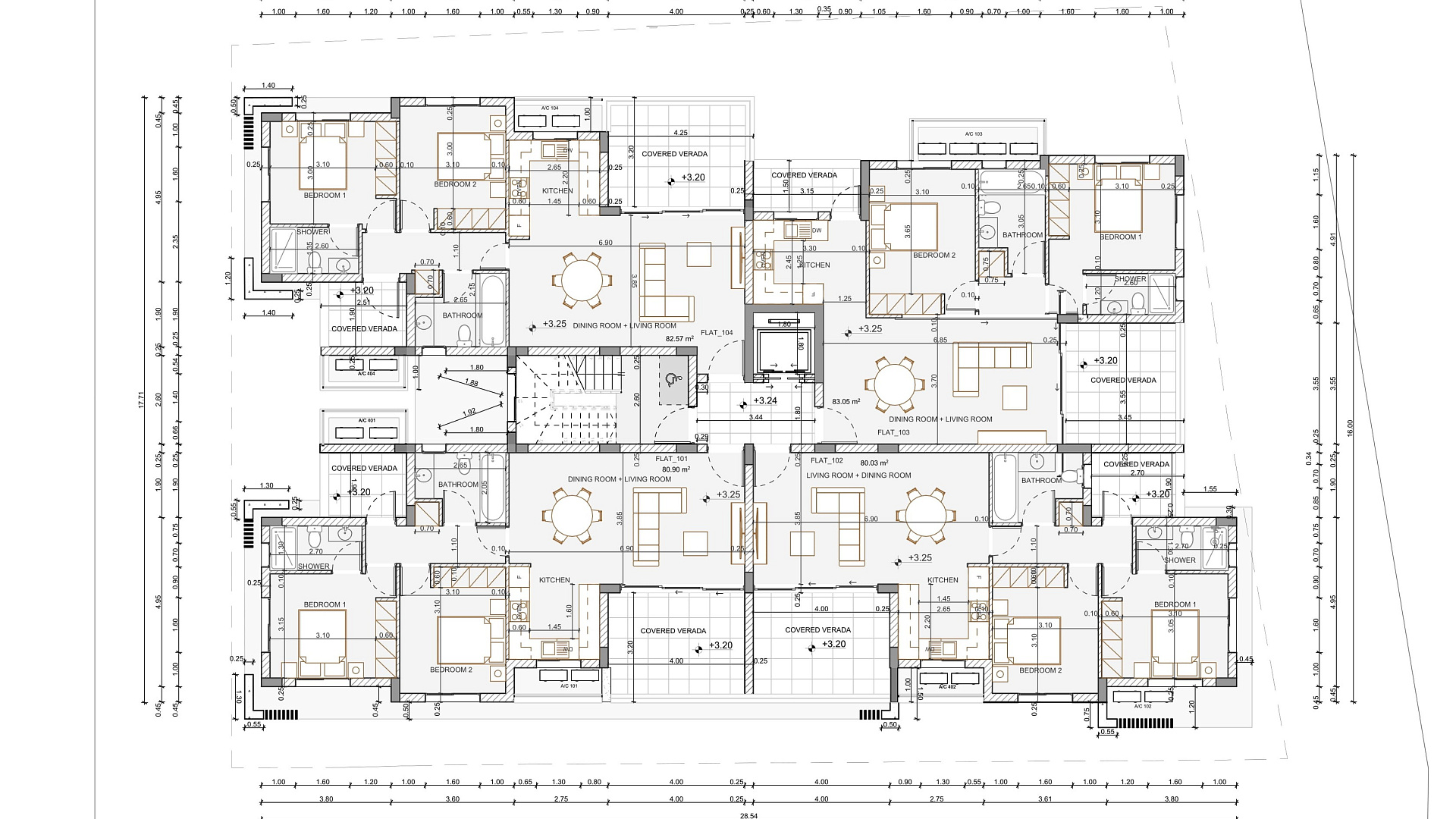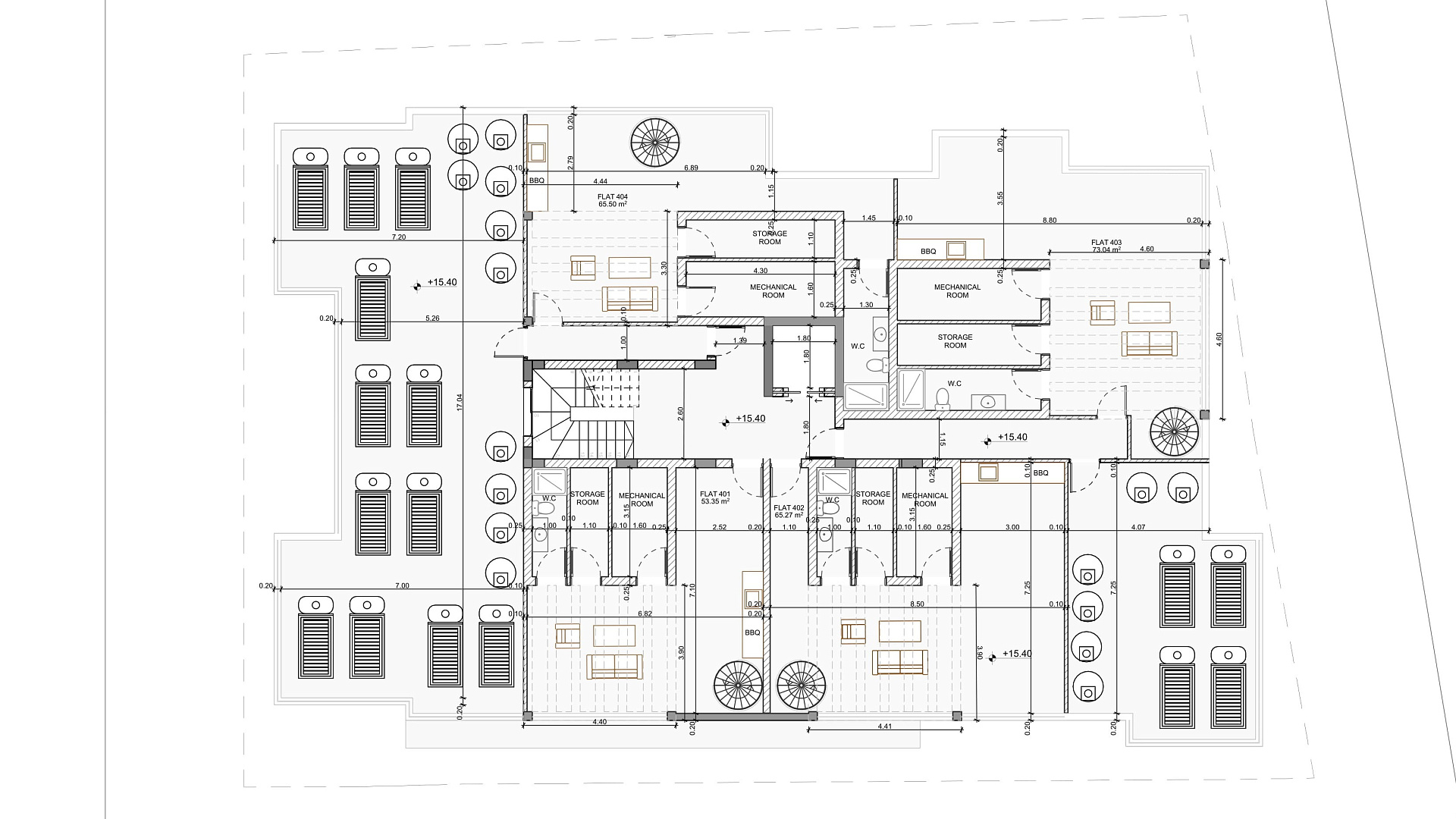 Apartment for sale in a new residential complex in the area of Drosia, Larnaca. The project features twenty—two two-bedroom apartments, all with spacious and modern living areas. The apartments on the fifth floor with two bedrooms and two bathrooms have large covered balconies, as well as two rooms on the roof with three bathrooms, which are accessible only to owners who prefer a luxurious life. It features a large bar and a barbecue area in the rooftop garden, as well as panoramic views of the famous salt lake of Larnaca. Each apartment has one parking space and a storage room on the ground floor.