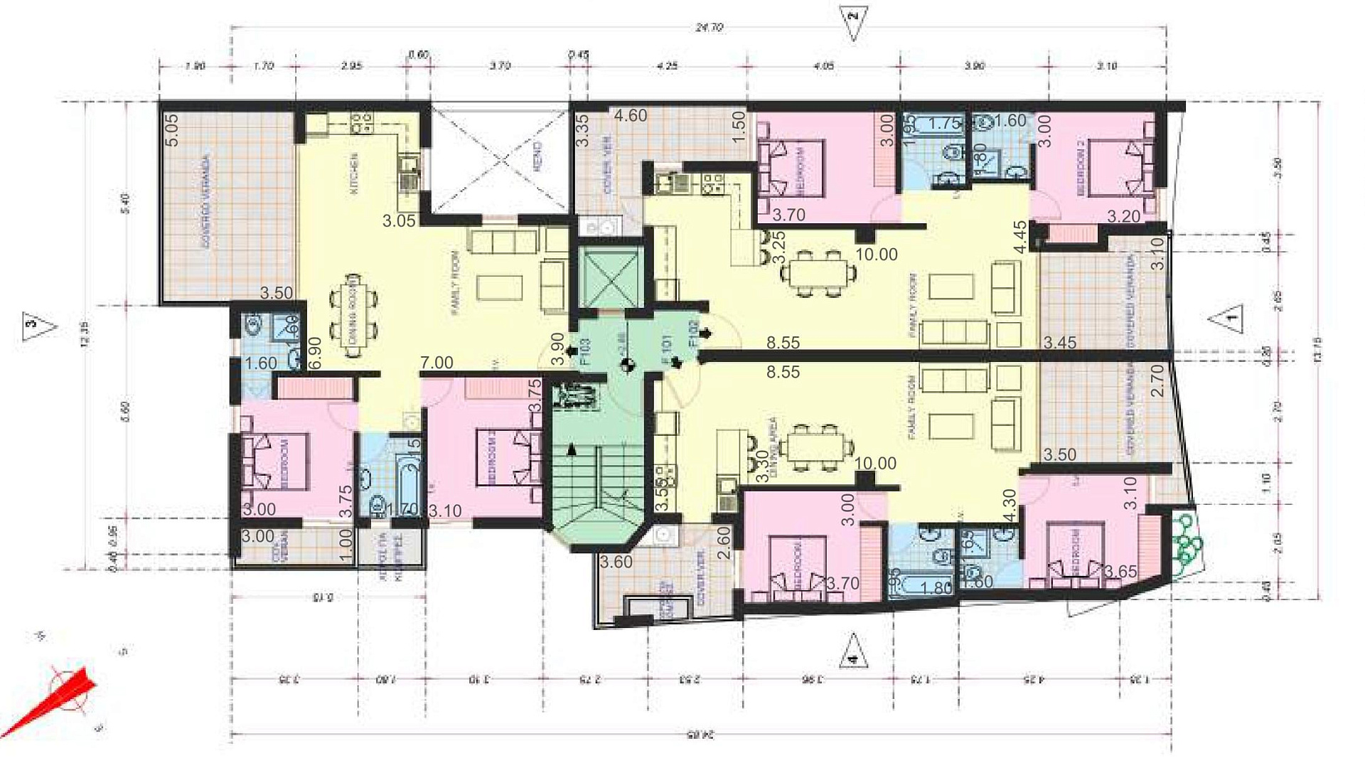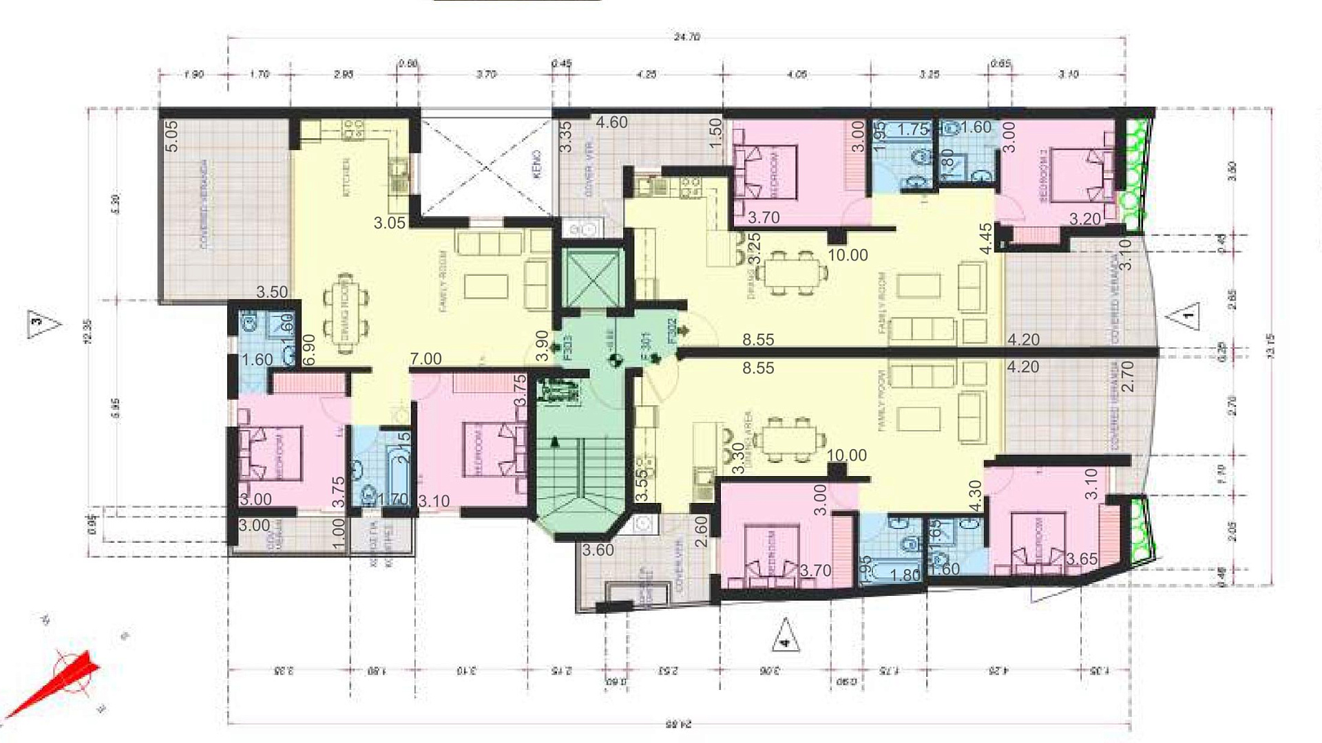 The apartments have functional layouts and spacious verandas. Parking spaces are provided for each apartment.
