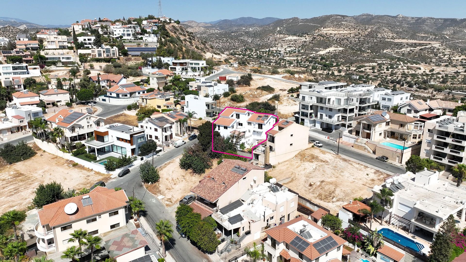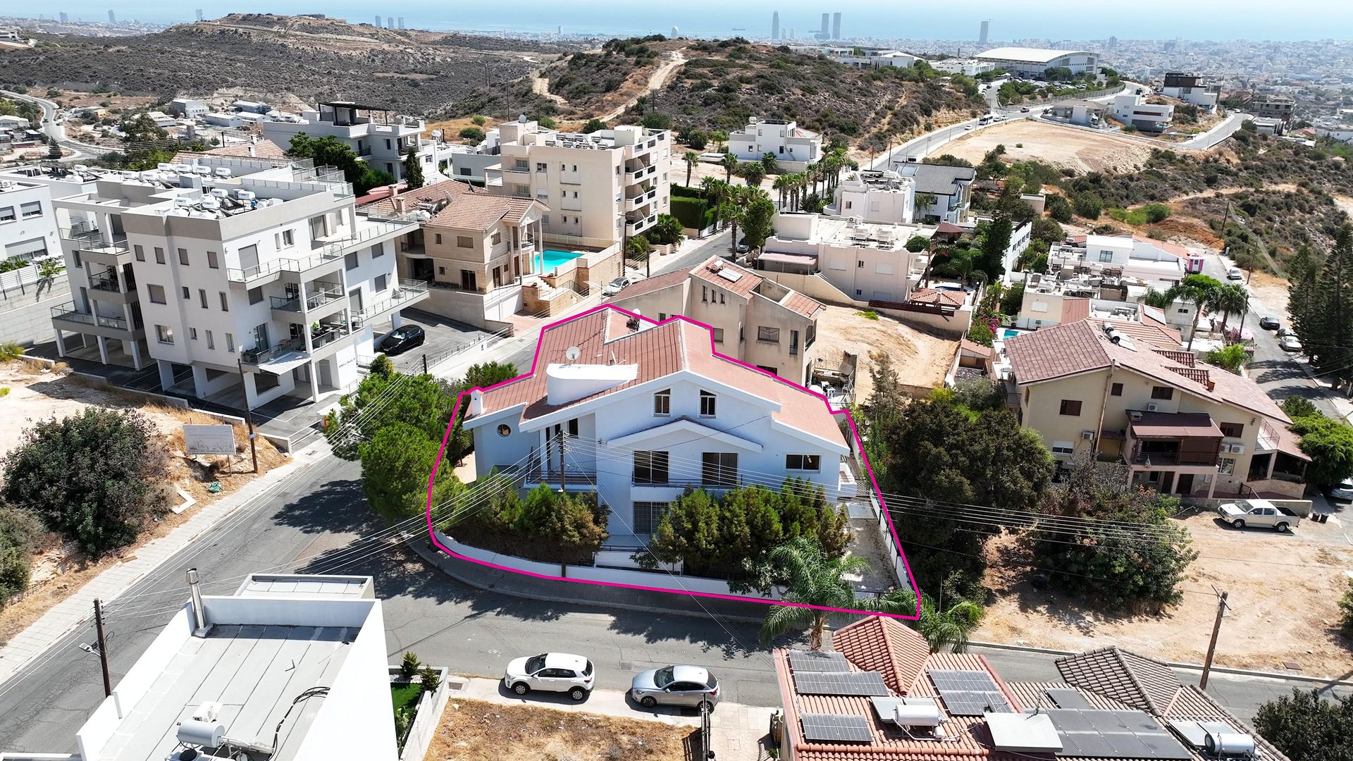 For sale a two-storey residential building with an area of 565 m2 in the area of Agia Fyla, Limassol. The building includes two separate apartments and an attic, located on a flat plot of 565 m2 with a 46 m facade. The ground floor consists of apartments, including a living room, a dining room, a kitchen, a guest bathroom, a bedroom, a glazed veranda and two outdoor verandas. On the higher level there are three more bedrooms (including a master bedroom with its own bathroom) and a separate bathroom. The semi-basement floor has a separate apartment with a living room, kitchen, bedroom and bathroom.