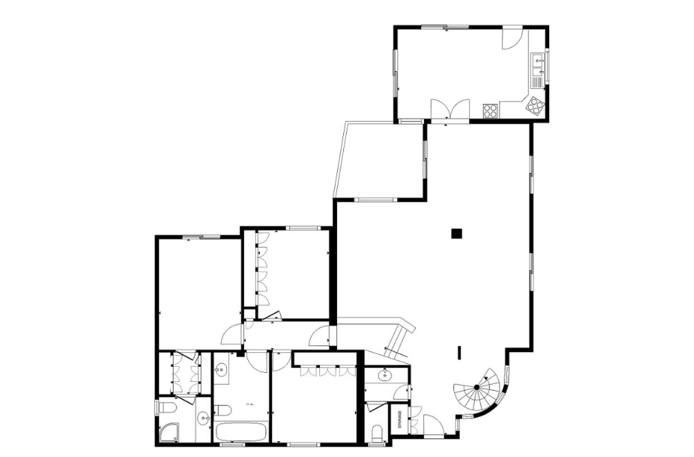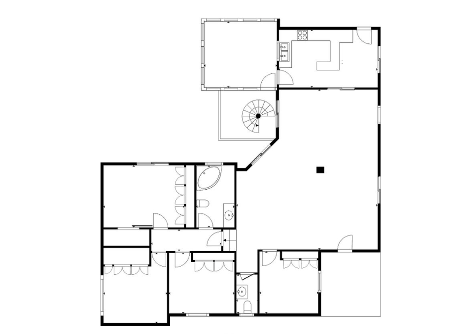 The total covered area of the building is 565 m2: 1st block: living area 215 m2, auxiliary 104 m2, covered verandas 13 m2, open 24 m2, 5 bedrooms, 3 bathrooms, 1 guest WC, 2 living rooms, 2 kitchens. 2nd block: living area of 186 m2, auxiliary area of 60 m2, covered verandas of 15 m2, open 17 m2, 3 bedrooms, 4 bathrooms, 1 kitchen, 1 living room.
