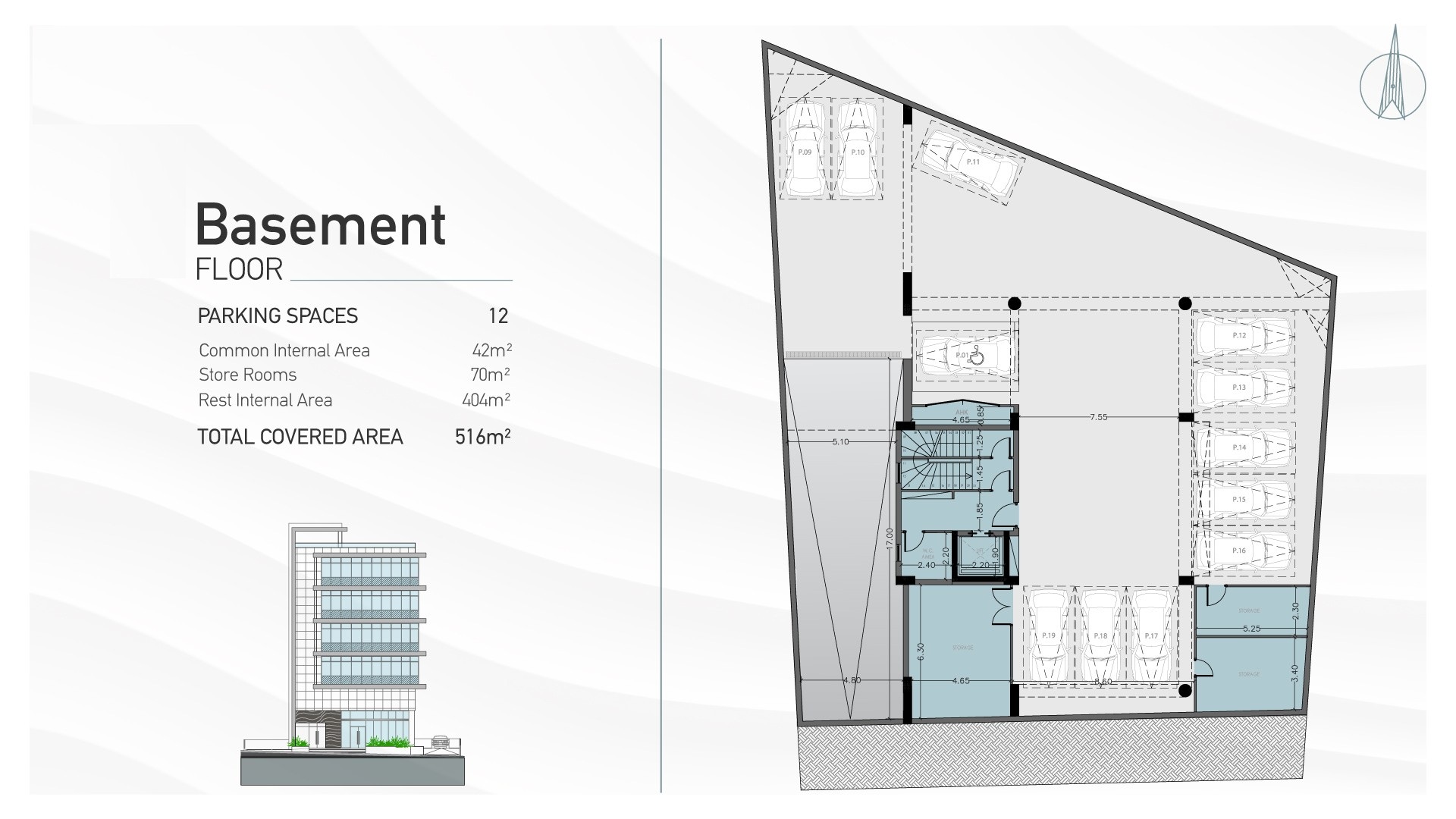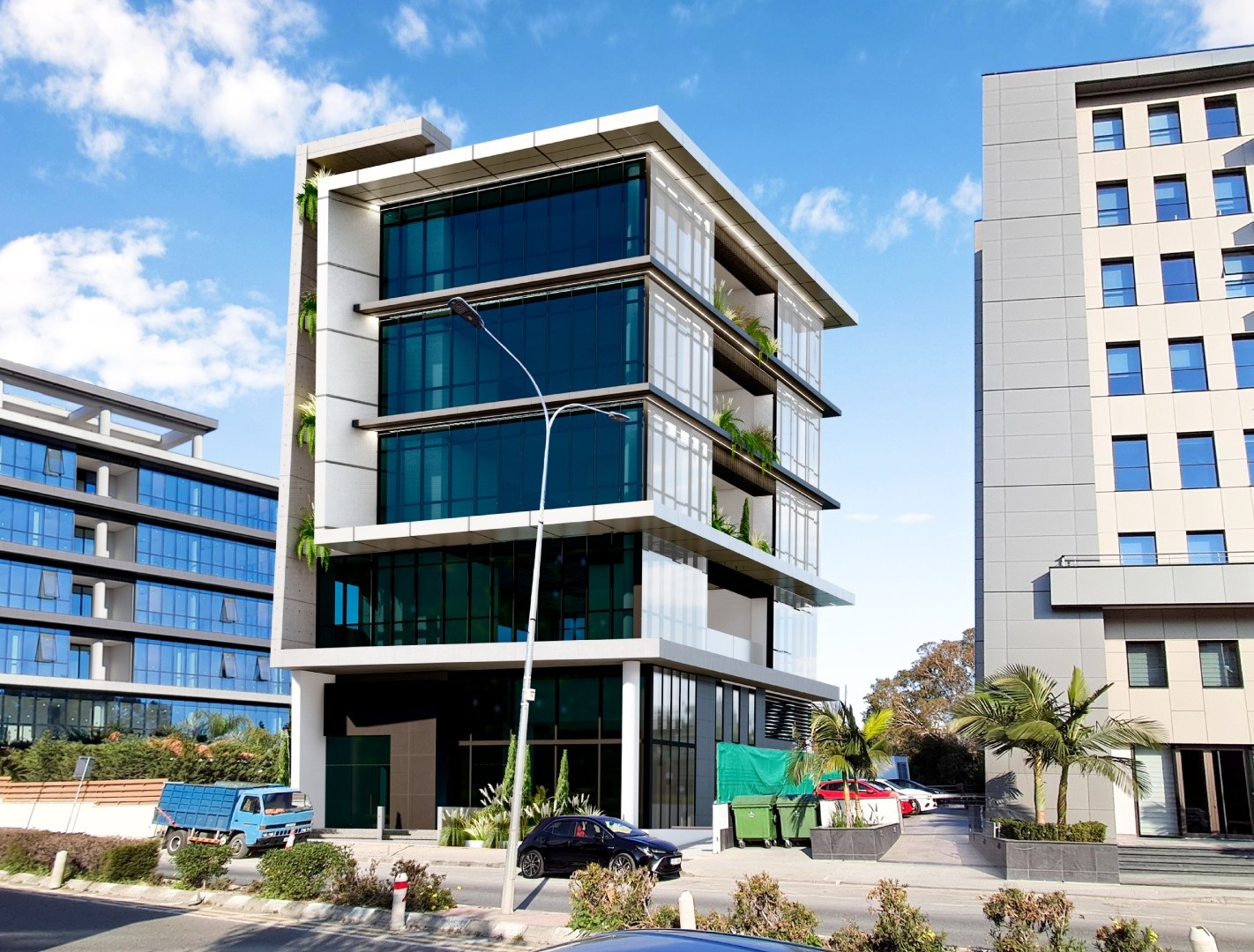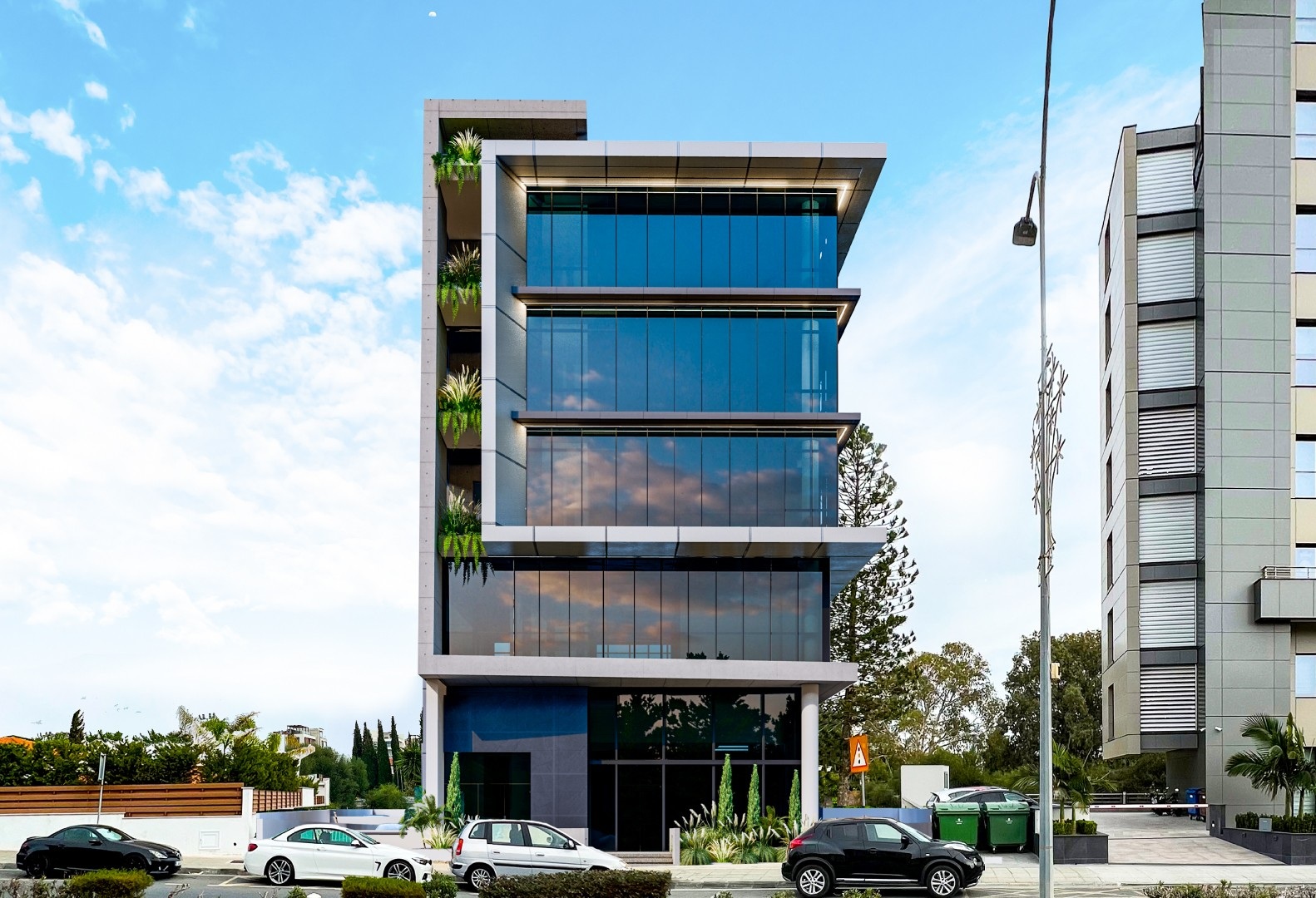 New office building for sale in Germasogeia, Limassol. 27 parking spaces (19 indoor and 8 outdoor). There are also storage rooms in the basement. On the ground floor of the lobby. There is a room designed for a store with a mezzanine. Technical floor. 5 office spaces. occupying the entire floor, with an area of 276 m2. Just 800 meters from the sea. It has easy access to the motorway. An ideal option for investment.