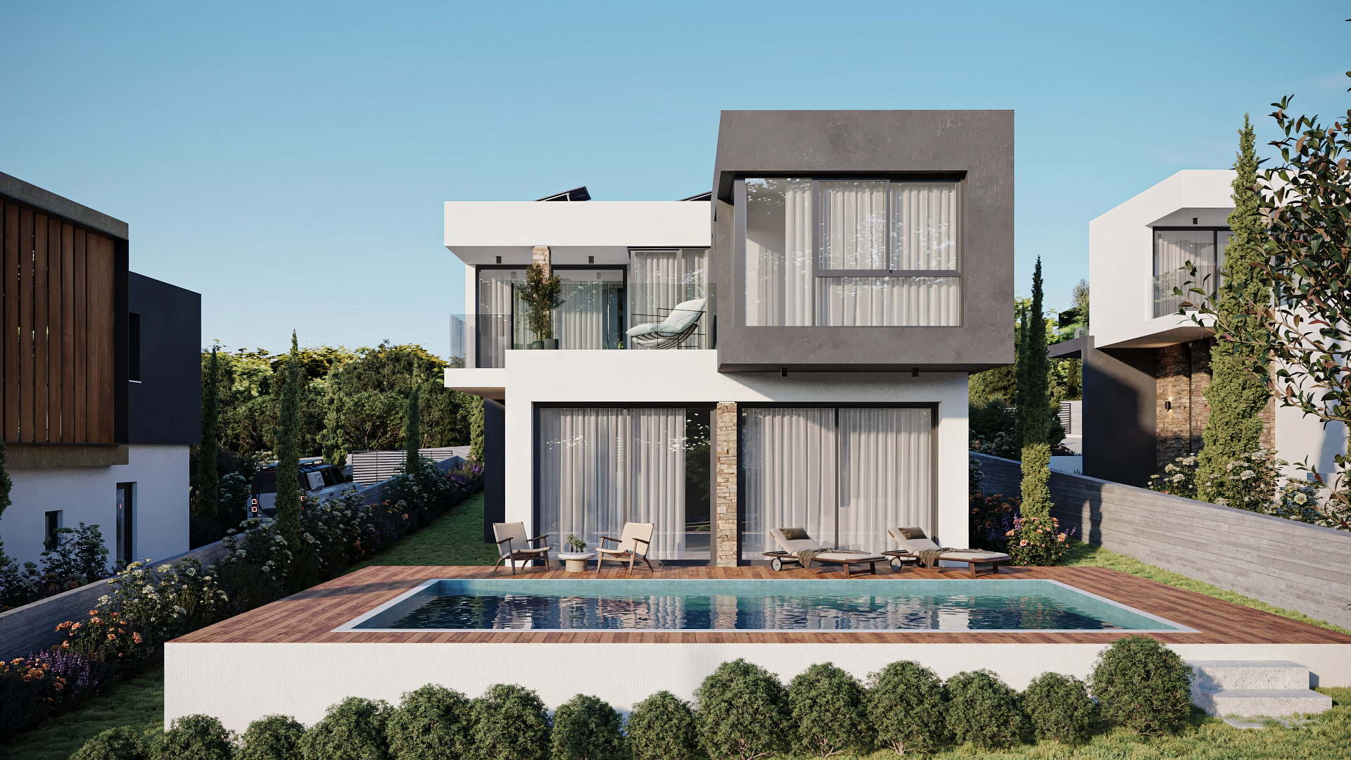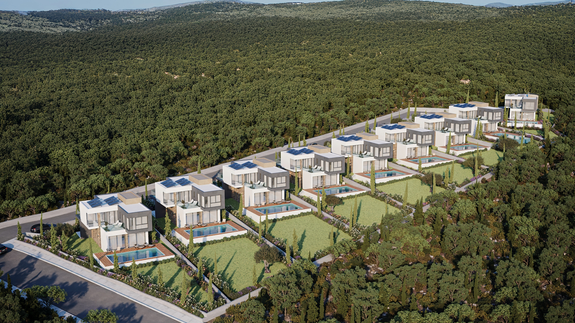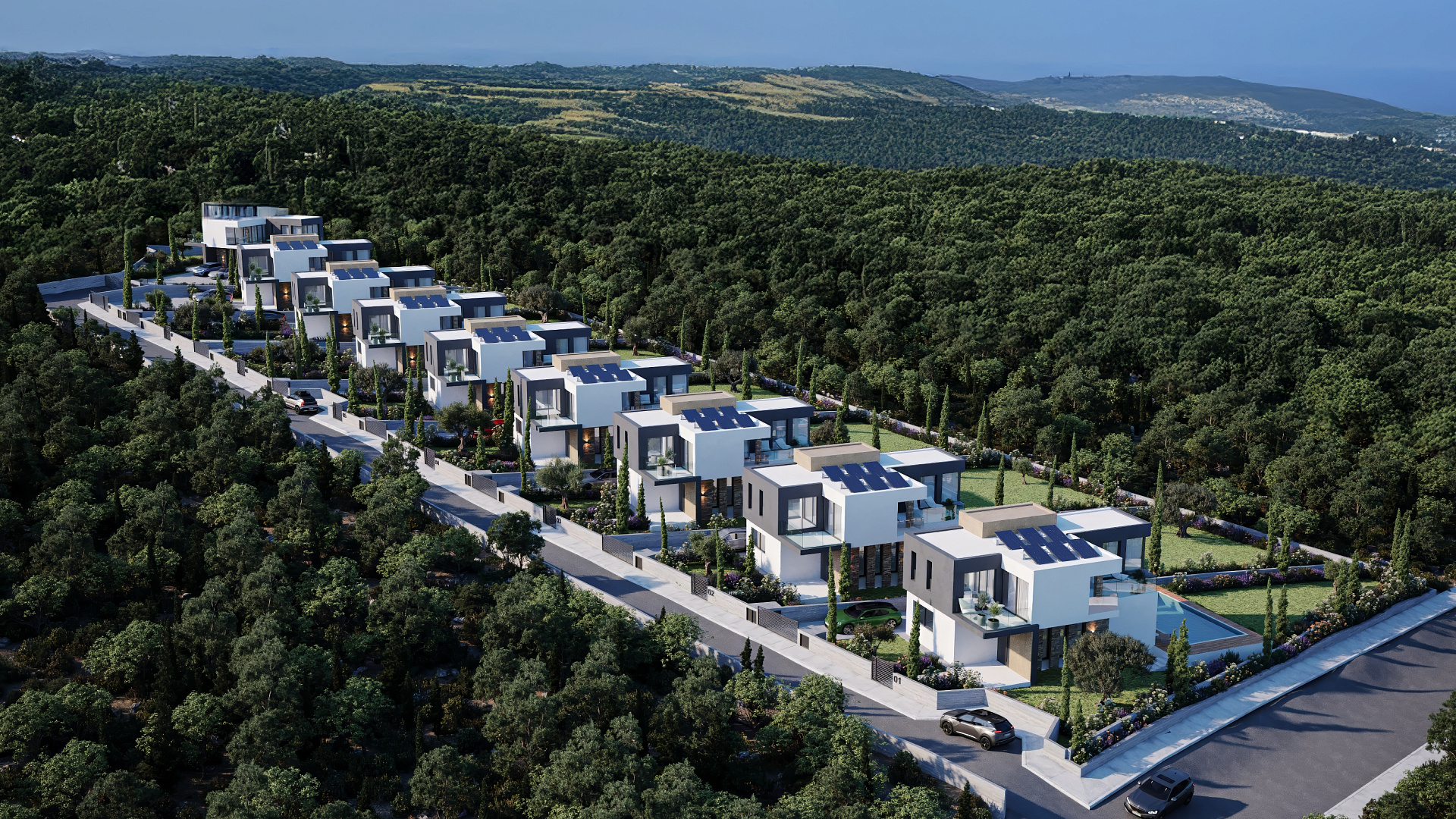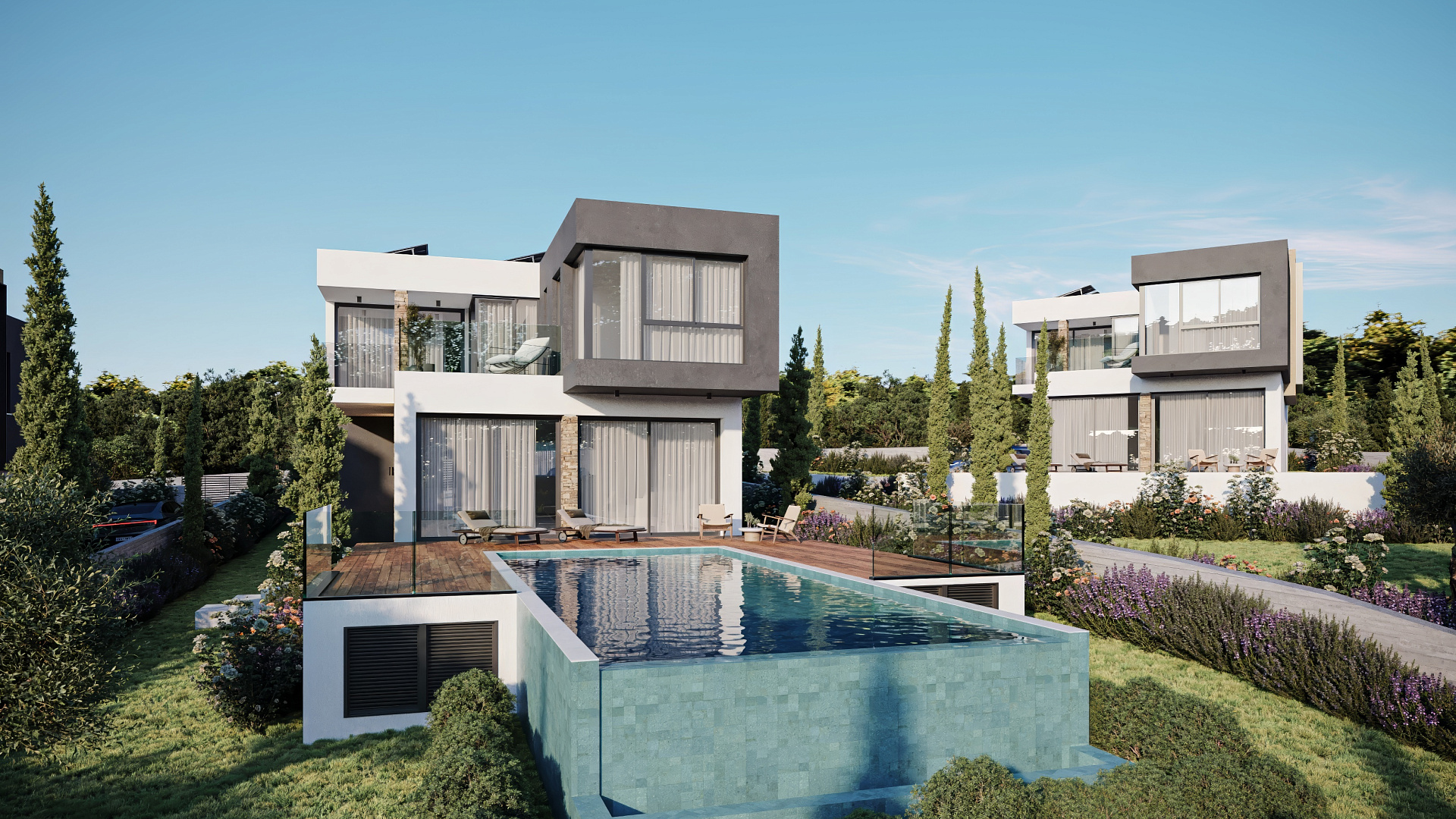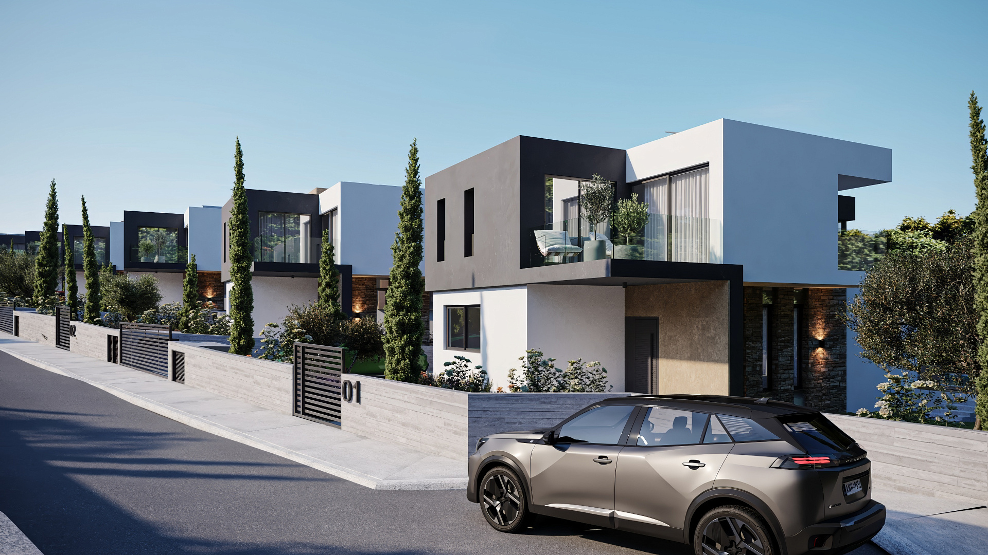 Villa for sale in a complex of 9 villas. The project is located in one of the most sought-after locations in Paphos, Tala. The residence consists of spacious interior spaces and is designed to make the most of the spectacular views of the sea and mountains surrounding the project from all interior areas. These facilities are designed using modern architectural lines, as well as using local materials to blend into the natural environment. Located just 9 minutes from the center of Paphos, Tala Golf course and the beach and only 4 minutes away.