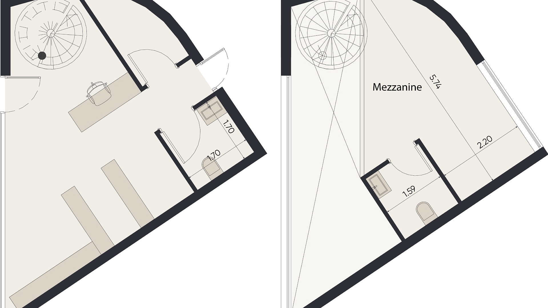 The residential area includes 15 apartments of various types: 2 studios, 4 single, 5 double, 2 triple, 2 quadruple. The apartments are distinguished by thoughtful layouts, high-level finishes and provide maximum comfort for living.