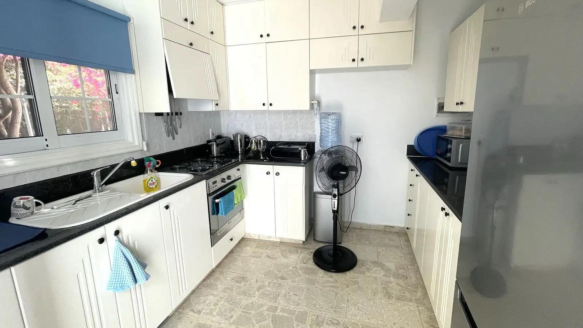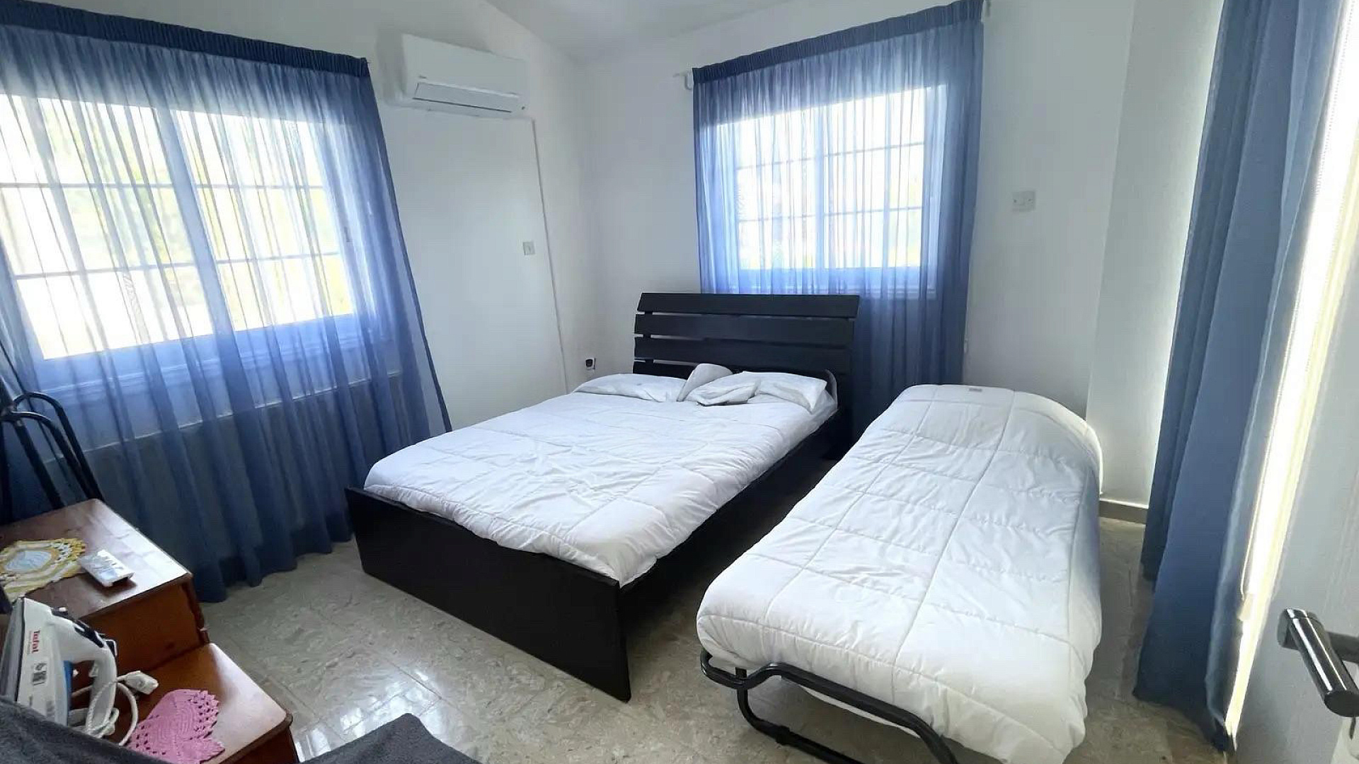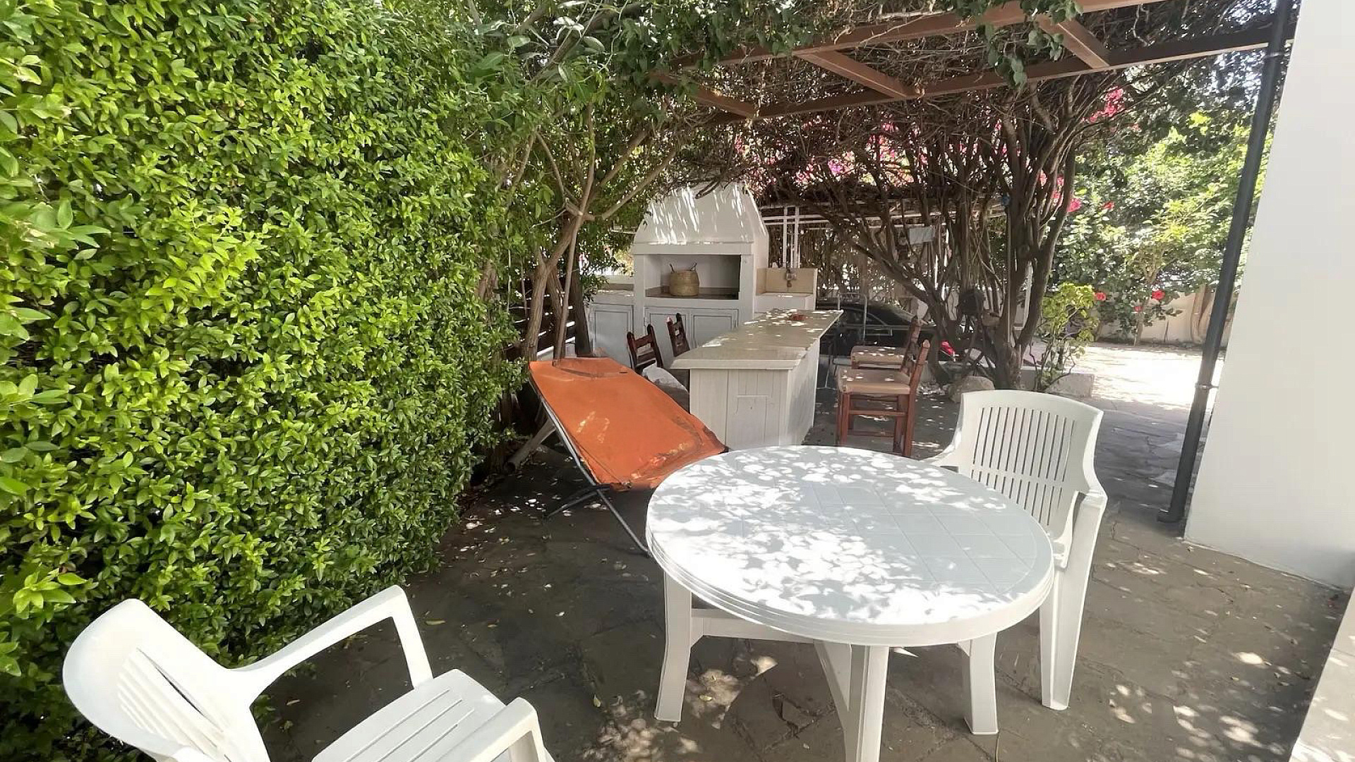Three-bedroom 123 m2 villa for sale in Protaras, Famagusta. The villa includes a spacious living room with a fireplace combined with a dining area, a fully equipped kitchen with access to the terrace, three bedrooms and two bathrooms. On the first level there is a living room, a kitchen, a bedroom and a shower room, and on the second there are two bedrooms with a shared bathroom. The master bedroom has a private balcony with mountain views, as well as a shared large balcony for two rooms. The villa is fully furnished and equipped with household appliances. The interior is decorated with taste and comfort, creating an atmosphere of comfort and privacy. On the territory of the house there is a well-maintained garden with mature trees, a barbecue area and a spacious veranda, ideal for relaxing and meeting friends. The location of the property is one of the best in Protaras: just a 5—minute walk from Protaras main street and 10 minutes from Fig Tree Bay beach. Shops, restaurants, bus routes and all necessary amenities are within walking distance.