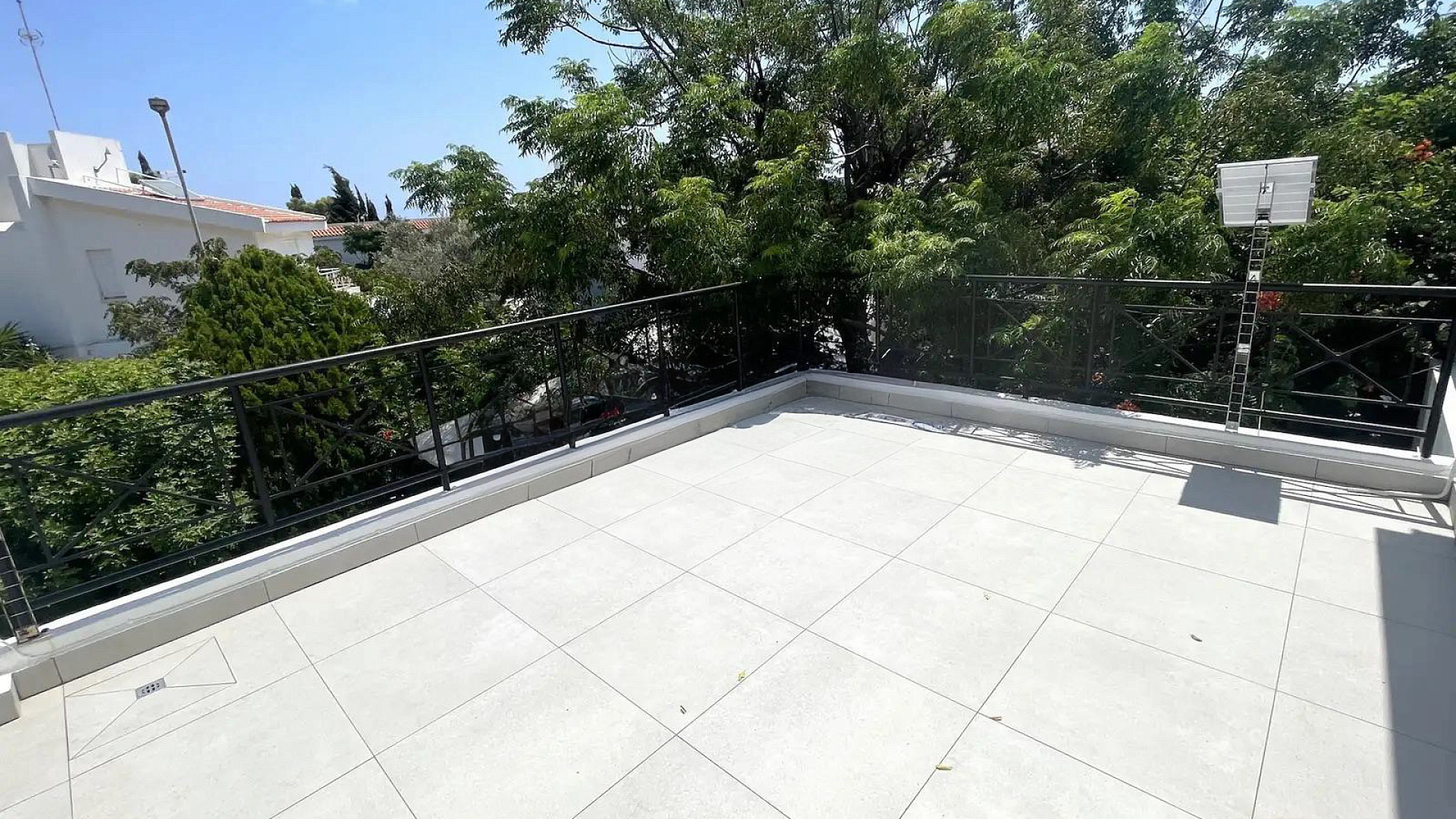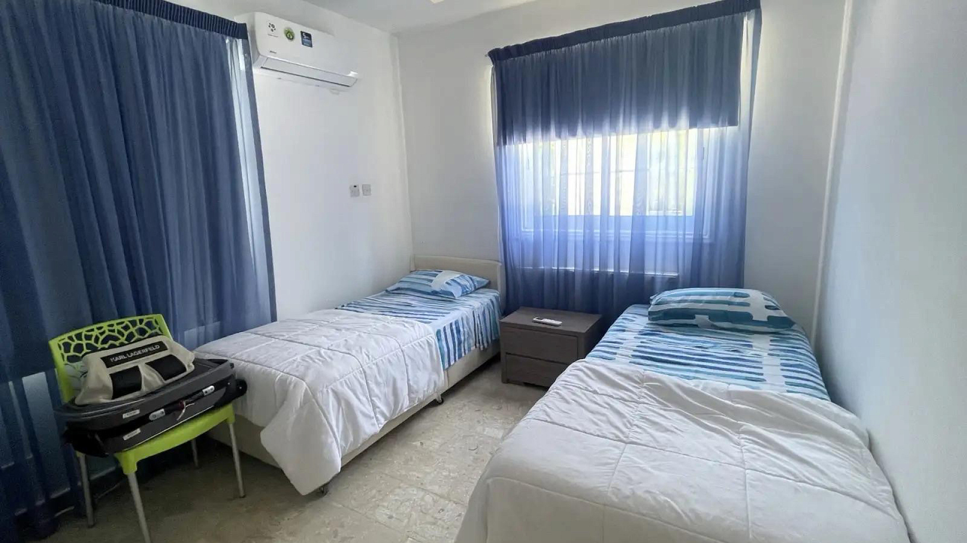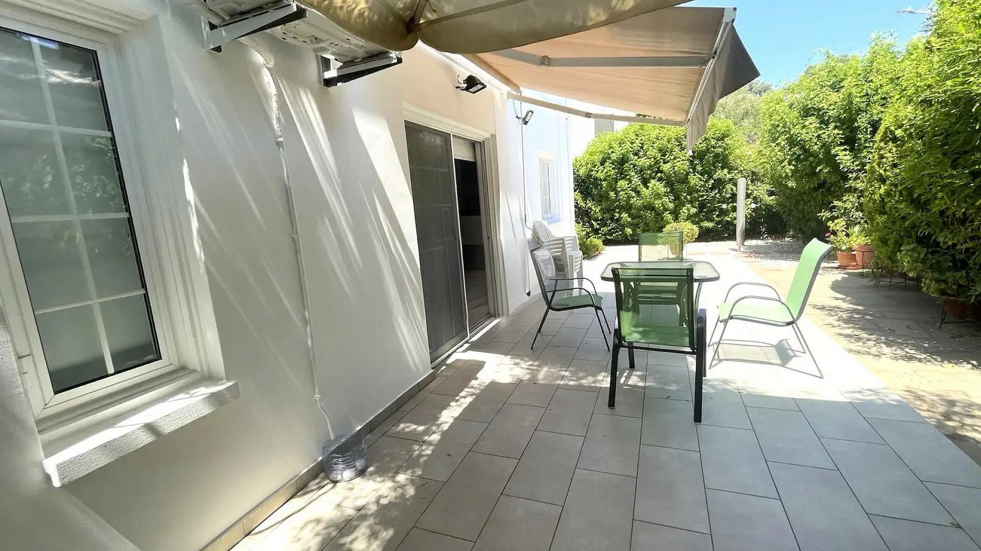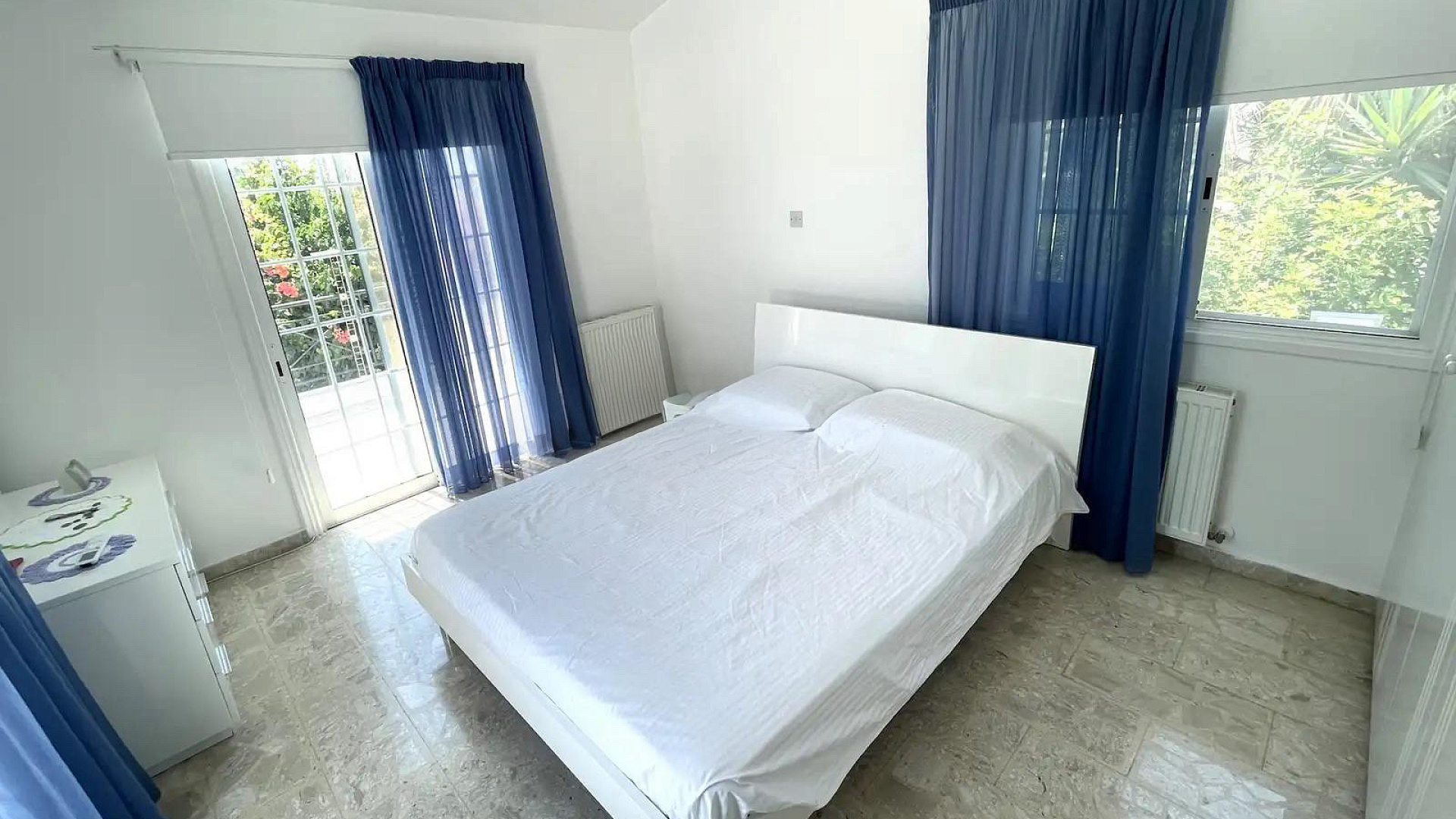 Three-bedroom 123 m2 villa for sale in Protaras, Famagusta. The villa includes a spacious living room with a fireplace combined with a dining area, a fully equipped kitchen with access to the terrace, three bedrooms and two bathrooms. On the first level there is a living room, a kitchen, a bedroom and a shower room, and on the second there are two bedrooms with a shared bathroom. The master bedroom has a private balcony with mountain views, as well as a shared large balcony for two rooms. The villa is fully furnished and equipped with household appliances. The interior is decorated with taste and comfort, creating an atmosphere of comfort and privacy. On the territory of the house there is a well-maintained garden with mature trees, a barbecue area and a spacious veranda, ideal for relaxing and meeting friends. The location of the property is one of the best in Protaras: just a 5—minute walk from Protaras main street and 10 minutes from Fig Tree Bay beach. Shops, restaurants, bus routes and all necessary amenities are within walking distance.